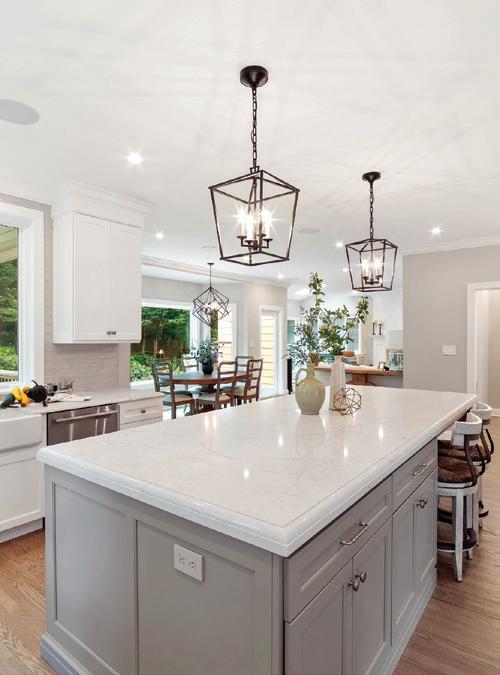 meet and mingle with guests. Across the hall, built-in shelves in the kitchen and dining room are stocked with books, complimentary Nespresso coffee and specialty Tea Forté teas.