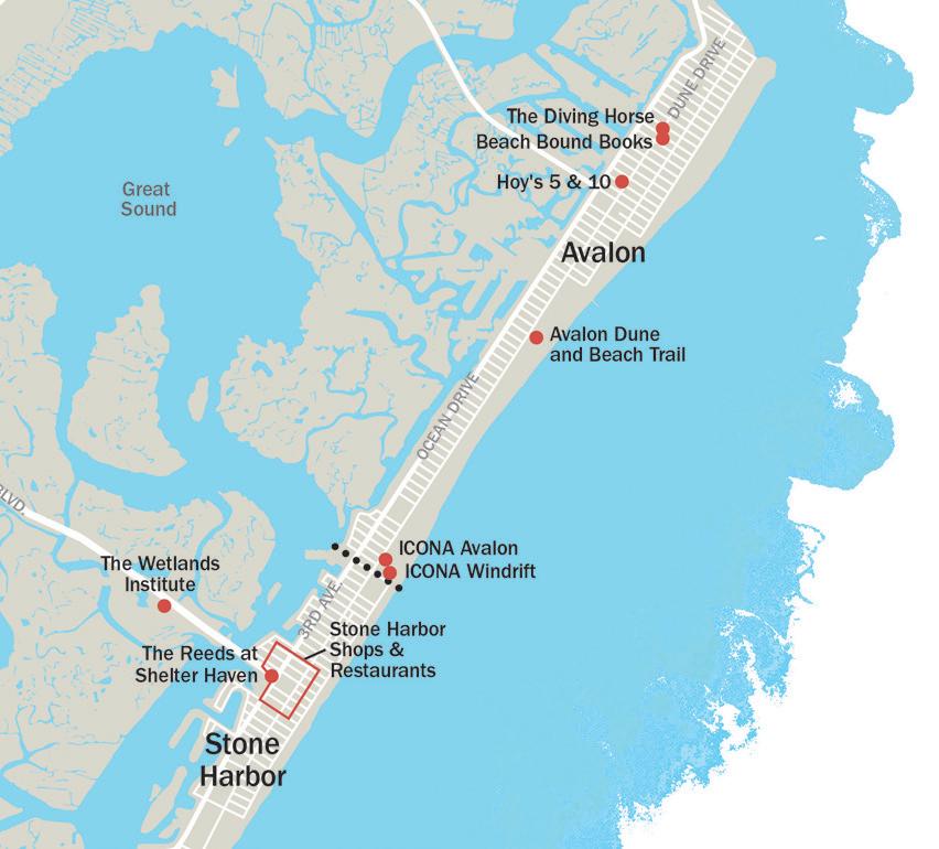 Icona Windrift, 105 80th St., Avalon, New Jersey, 609368-5175, icona.com/windrift. Rates begin at $529. The Reeds at Shelter Haven, 9601 Third Ave., Stone Harbor, New Jersey, 609-368-0100, reedsatshelterhaven. com. Rates begin at $524.