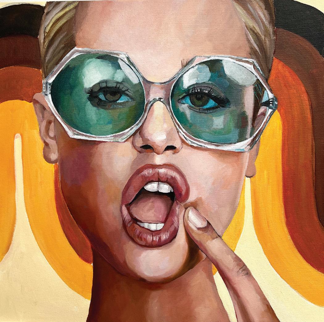 “They’re not all beautiful, perfect women,” explains the figurative painter, who lives in Falls Church. “I like the fact that they’re being naughty or smoking cigarettes. I tend to do a lot of sunglasses-wearing women, because I just think it’s a cool look.”