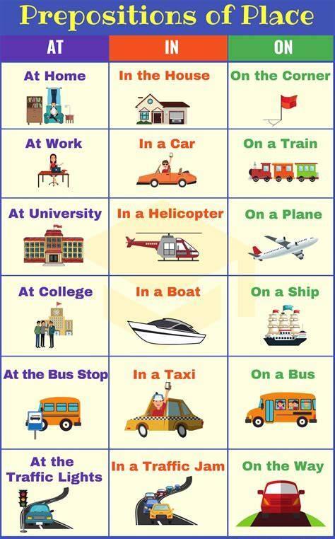 The prepositions of place IN, ON, AT In general, we use IN to refer to something that is within an enclosed space. ON for something that sits on a surface. TA when we refer to a specific point.