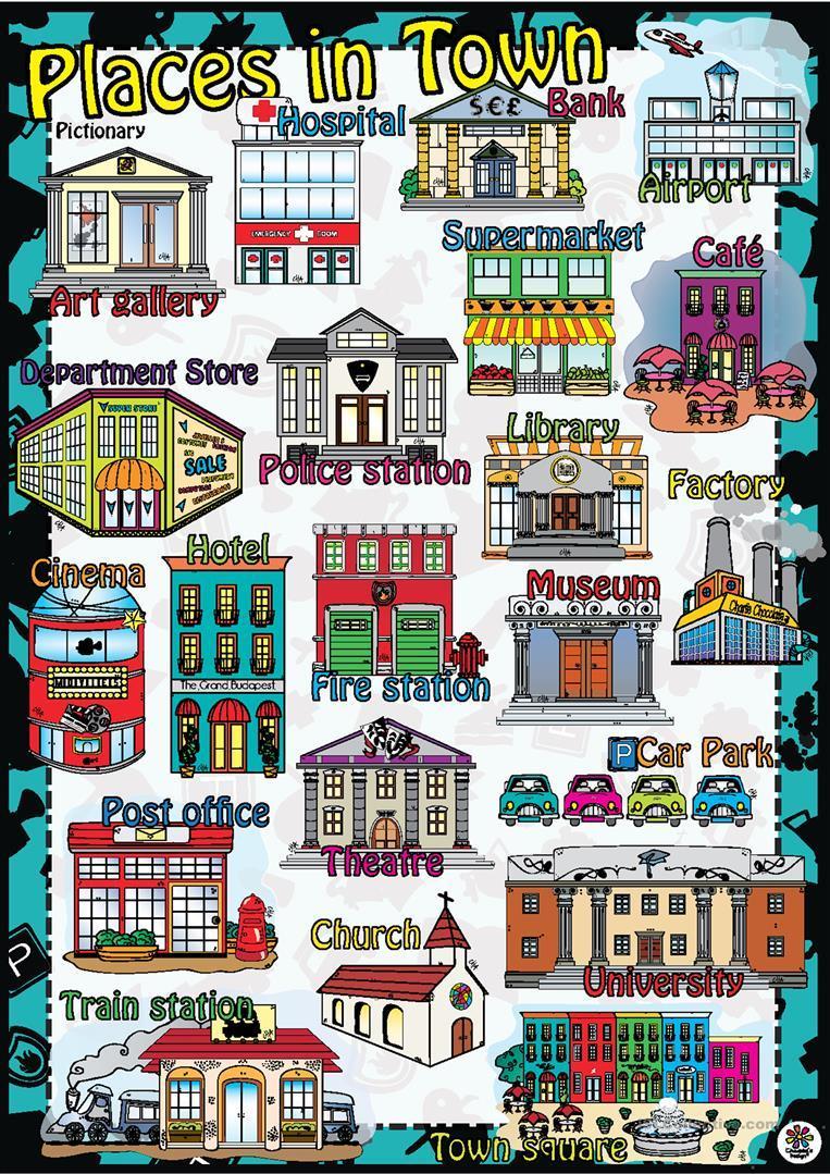 The concept of "Places Around Town" refers to the different places and establishments that you can find in a city or town.