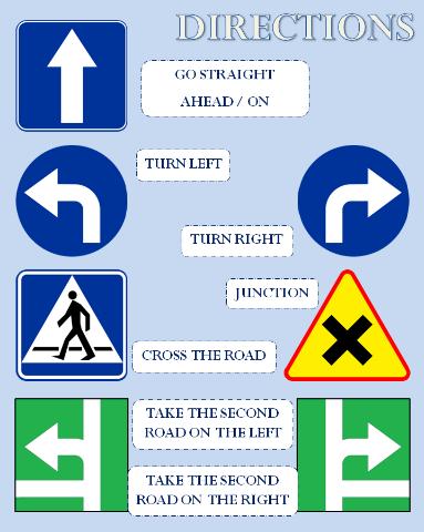 To give directions in english, you must practice vocabulary related to directions, such as "turn left," "go straight," and "take the second street on the right"