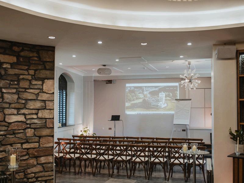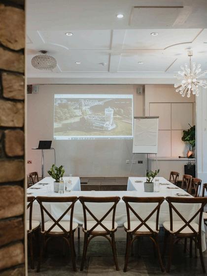 Furnished with a stunning chandelier and striking multi-textured interior décor, the William West room is a unique space that can accommodate a range of layouts for corporate hire. With a projector, stage, Sonos music system and a private bar, the William West is perfect for day and evening hire.