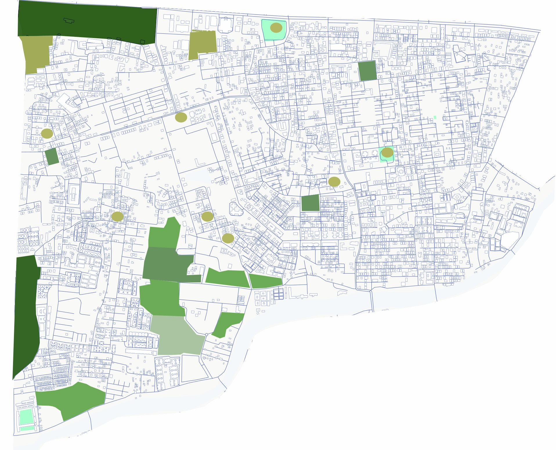 The spatial analysis of the urban grain & interconnections of built-forms allows preliminary understanding of activity densities. The map has been subdivided into 6 urban tissues based on the diversity in the visual character, emotion & social connection of each urban space.