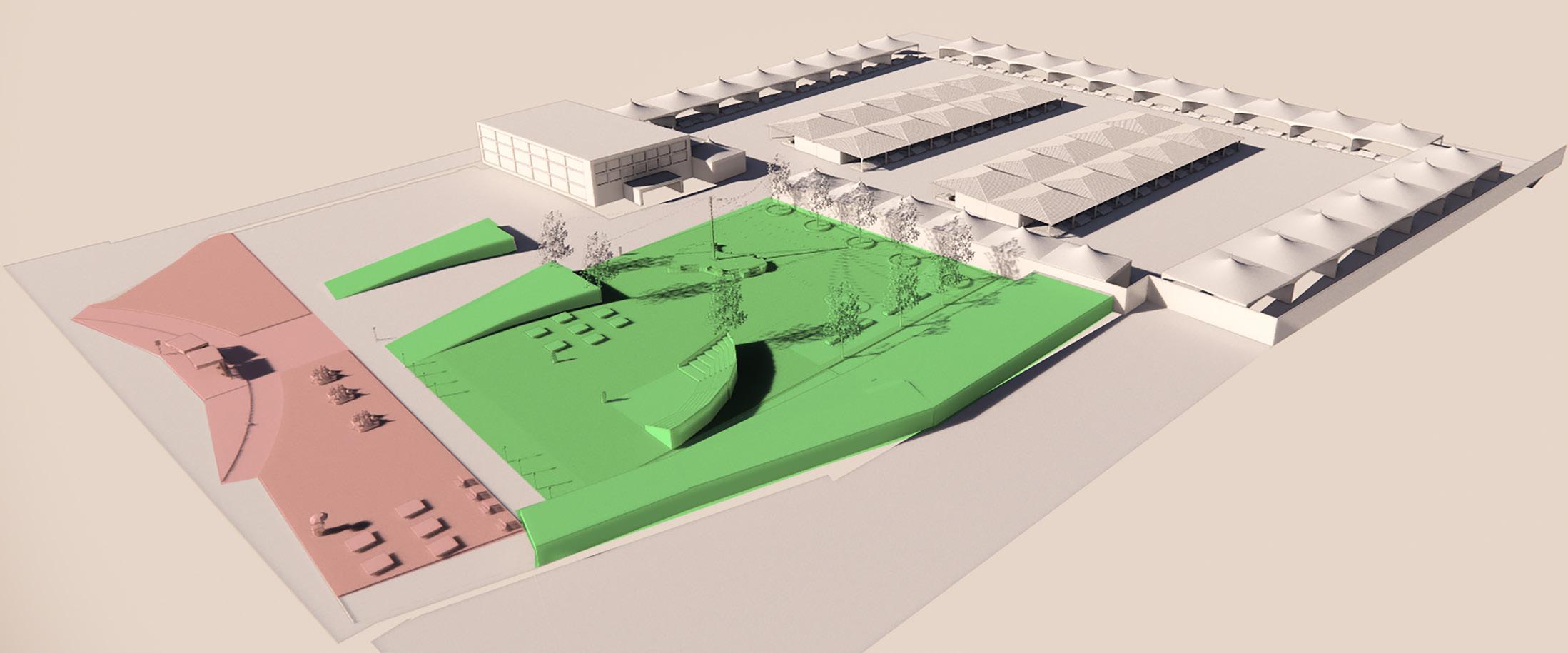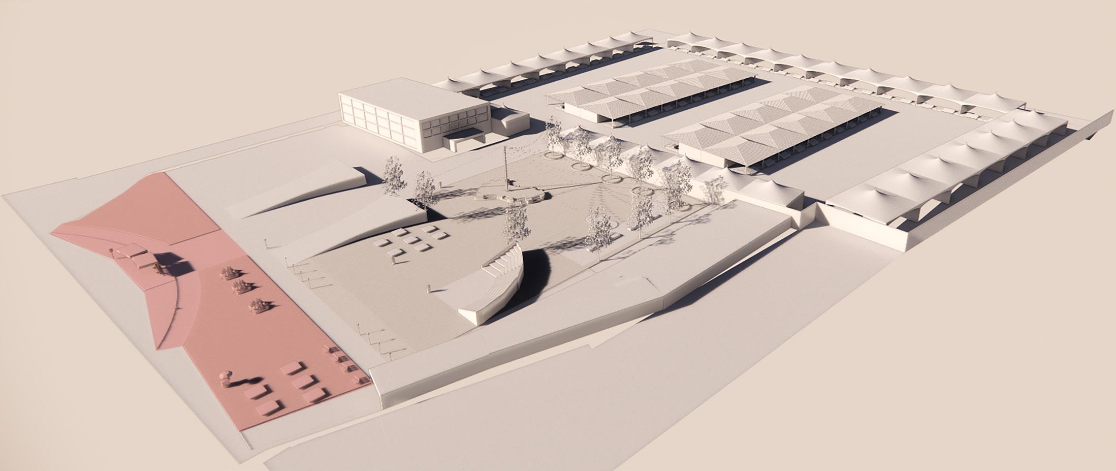 Phase 1- The phase involves the addition of a urban plaza which acts a buffer zone between the market and the highway.