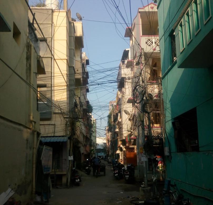 Along 3m wide road- This area consists of narroow build ings having minimum 2 storeys going upto 4. No offsets are considered despite tall height. Ratio = 1:4 Extremely High Enclosure