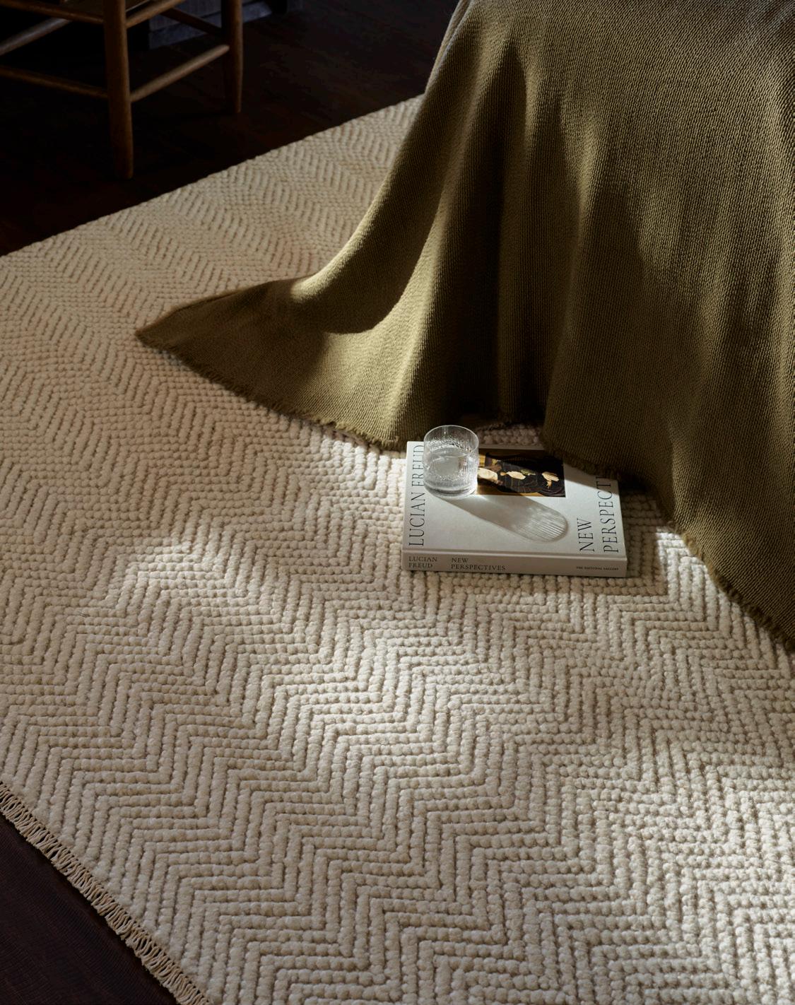 Tempest transports us to far-flung vistas with premium undyed wool hand-knotted into furrowed lineaments. Spun from lustrous New Zealand wool and flat-woven on a vertical loom for a nuanced handle, Tundra is an elegant echo of the glimpses of earth exposed through layers of snow. The pinnacle of softness, this is an enduring style for all seasons.