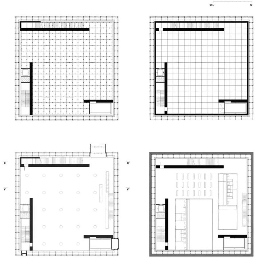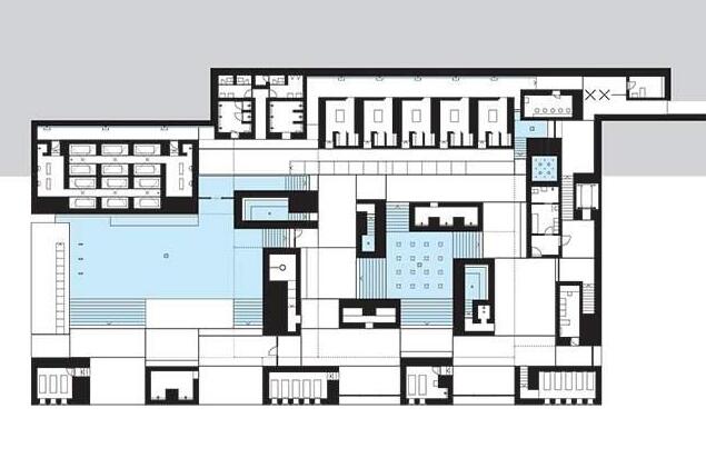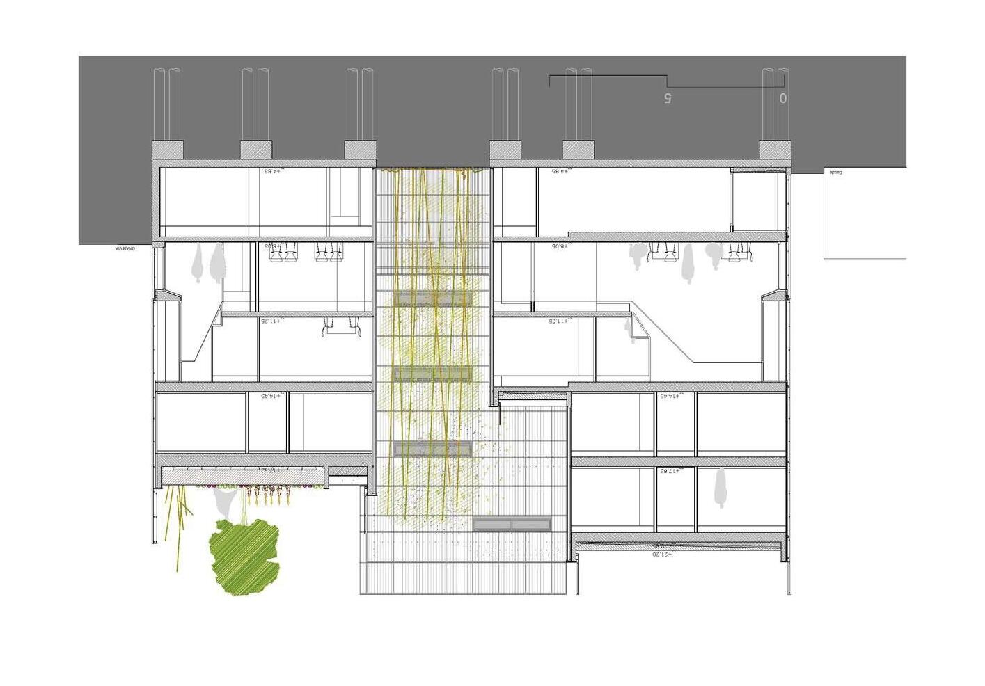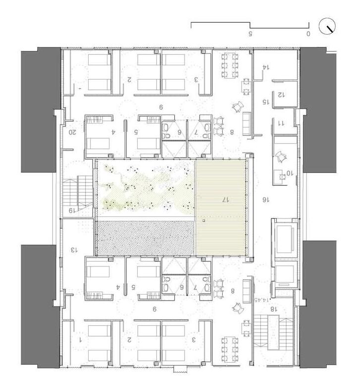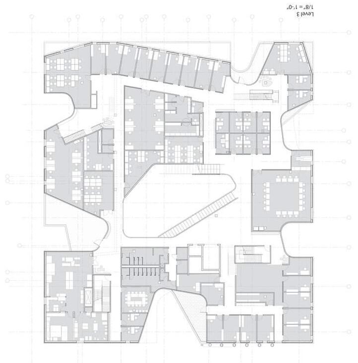 Seven “centers of light” are carved out of the plan allowing natural daylight and ventilation deep into the mass