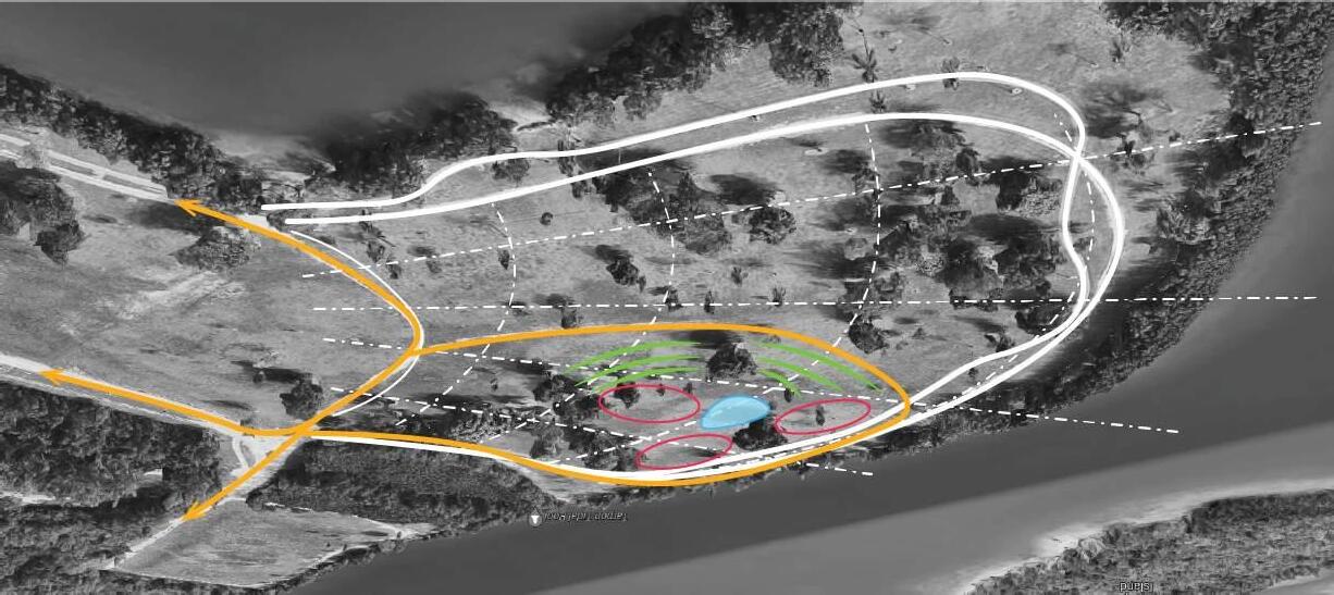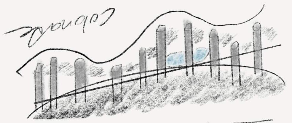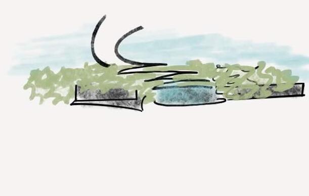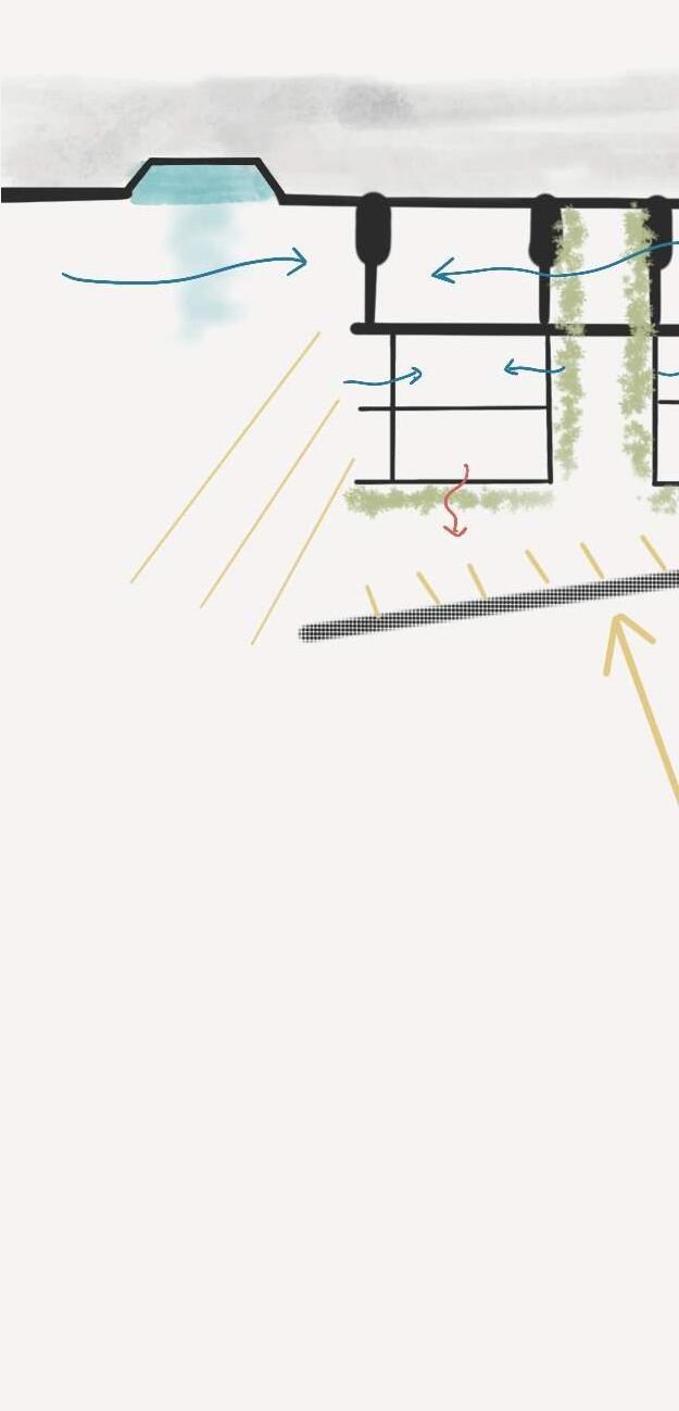 SCHEME NORTH EAST AERIAL SCHEME ENTRANCE WATERFALL SKETCH PRECEDENT - LEO ESTATE WINERY | JOLSON