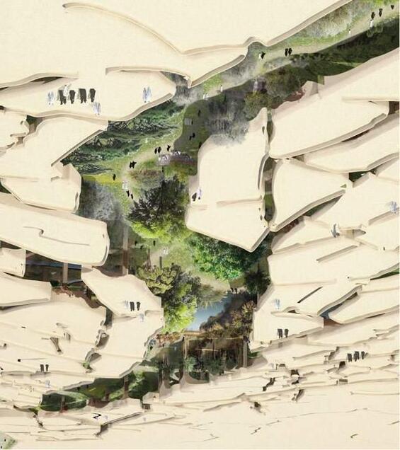 SCHEME NORTH EAST AERIAL PRECEDENT - AL FAYAH PARK | HEATHERWICK STUDIO PRECEDENT - SOUTHERN DUNES HOTEL | FOSTER PRECEDENT - AL FAYAH PARK SECTION | HEATHERWICK STUDIO