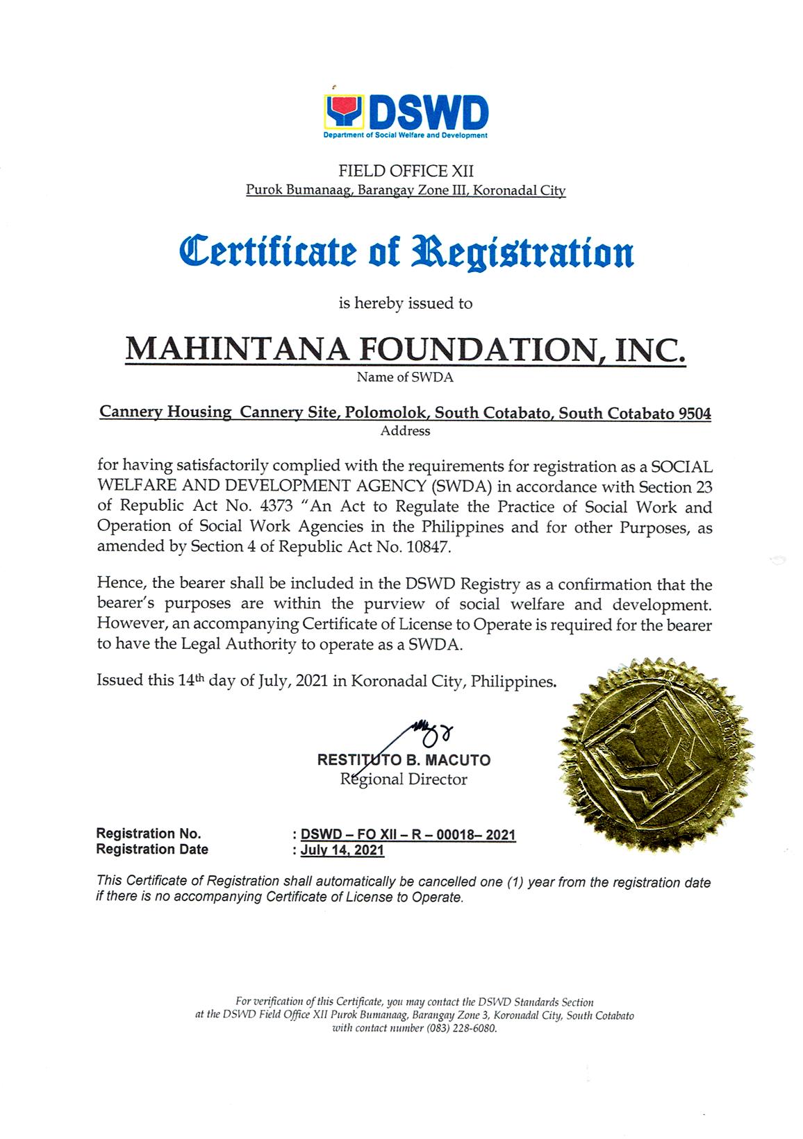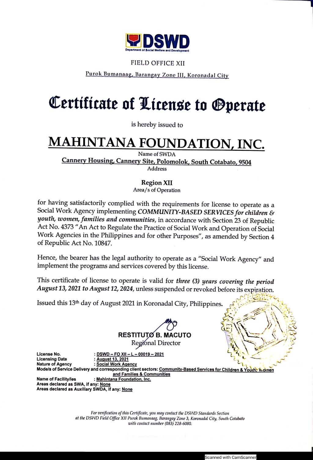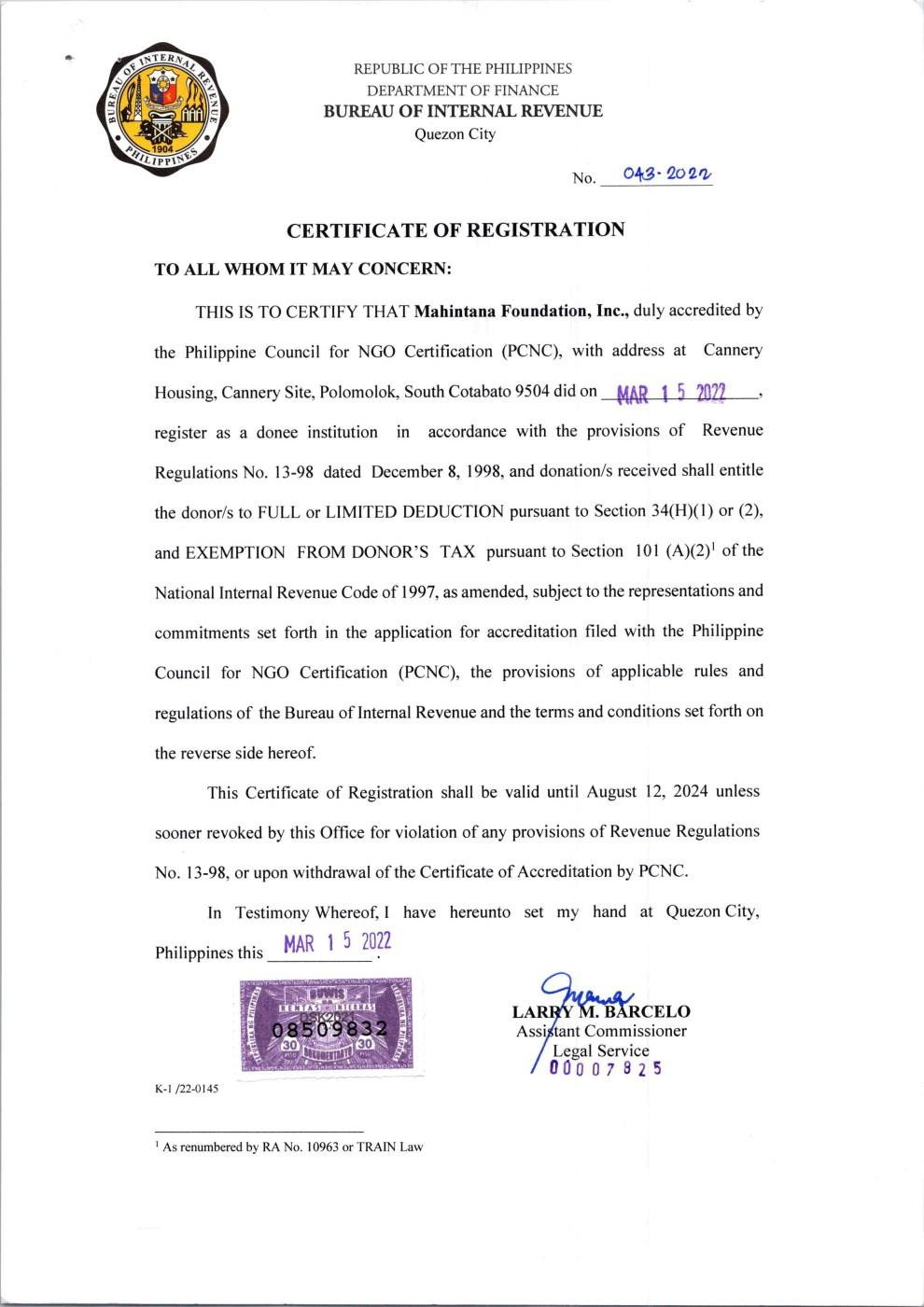 • Provided PhilHealth Insurance and Accident Insurance for 31 MENRE Polomolok beneficiaries and scholarship assistance to one MENRE dependent
