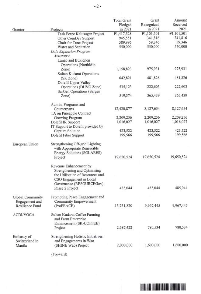 Dolefil Php 2.07M Php 3.52M AUG. 10, 2020 –AUG. 31, 2023 Php 5.58M Php 2.21M