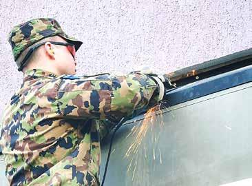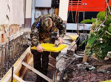 bei der Planung hohe Priorität auf eine einfache Bauausführung gelegt wurde, erforderte die Umsetzung umfassendes Fachwissen. Dank eines engagierten Teams, bestehend aus Schweizer Soldaten und Soldatinnen mit handwerklicher Grundausbildung aus verschiedenen Berufen wie Maurer oder Kranführer, konnten die bis zu einer Tonne schweren Betonelemente mit höchster Präzision eingebracht werden. Dies unter konsequenter Einhaltung der Arbeitssicherheitsmassnahmen. Trotz der sehr eingeschränkten Platzverhältnisse, bedingt durch die urbane Lage und die witterungsund sicherheitsbedingten Bauunterbrüche, konnte das Projekt erfolgreich umgesetzt werden.