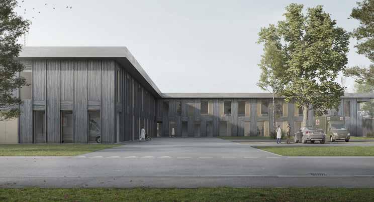 Beim «Neubau für das medizinische Zentrum und für die Militärpolizei West in Payerne» handelt es sich um einen Ersatzneubau, der am bisherigen Standort der Militärpolizei zu stehen kommt. Der geplante Ersatzneubau wird ebenfalls im besonders energieeffizienten Minergie P ECO Standard realisiert. Er beinhaltet zwei abgetrennte Gebäudebereiche, in denen einerseits das medizinische Zentrum (MZR) und andererseits die Militärpolizei untergebracht sein werden. Das im südlichen Trakt gelegene MZR wird 60 Betten sowie Untersuchungs, Behandlungsund Nebenräume für 18 Mitarbeitende des Miliz und Zivilpersonals umfassen. Die Militärpolizei West mit insgesamt 64 Mitarbeitenden wird künftig im nördlichen Trakt über Büros, Theoriesäle, Arrestzellen, Magazine sowie Infrastruktur für die Hundehaltung verfügen.