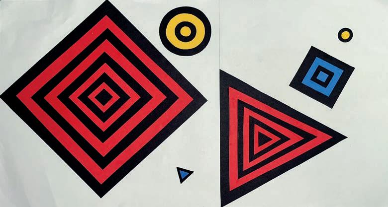“Horizontal energy using horizontal lines, vertical energy using horizontal lines, vertical energy using vertical lines, horizontal energy using vertical lines - all using triad colors.”