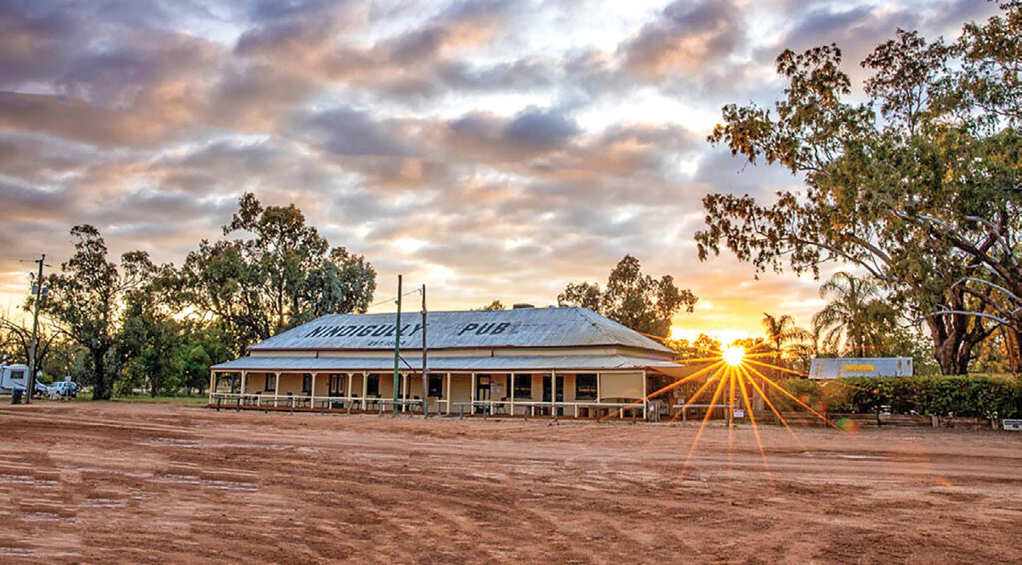 Toobeah, with its lovely gum trees growing either side of the highway, is just 49 kilometres west of Goondiwindi. This little town is set amid the cotton and grain-growing farmlands and is known for its horse sports. Tiny Toobeah, where various traffic roads meet, is simply described as a main street, and the Coronation Hotel is hard to miss. The pub has a great play area at the back for the kids; a caravan park and accommodation are also available. Away from the pub, fishing and bird watching are the main activities.