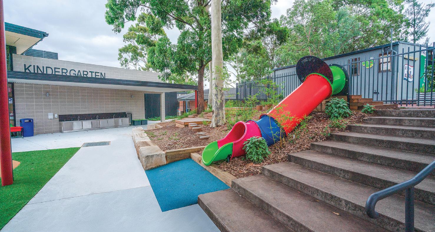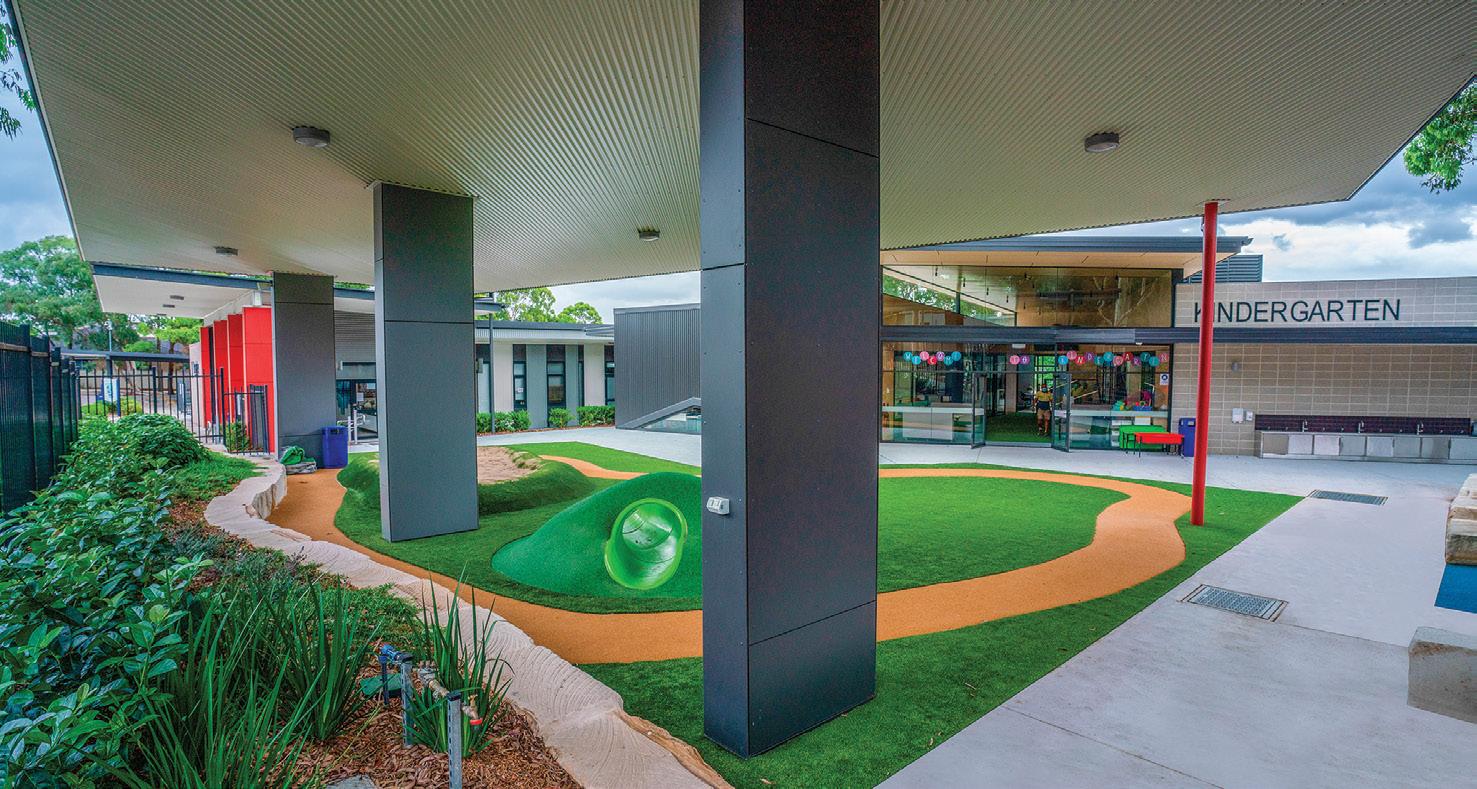 The design, sympathetic to the historic precinct, had height limitations, roof curves and an innovative playground. Civil works included sandstone blocks cut and built to curves in the play areas.