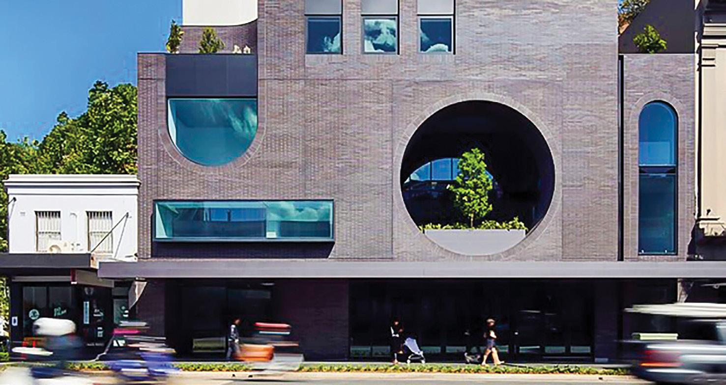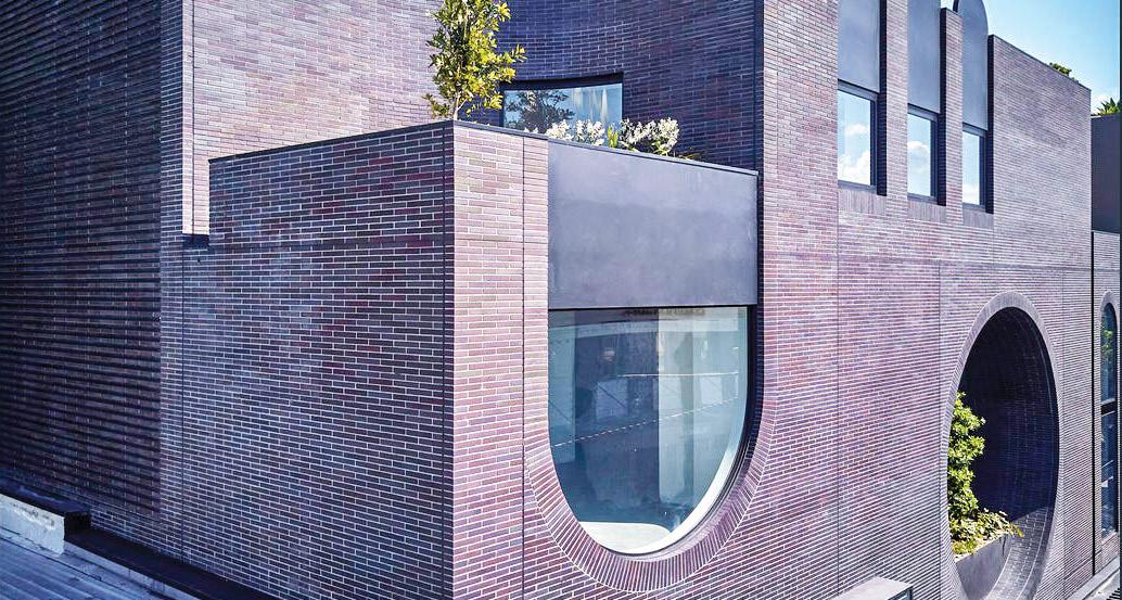 A striking street presence with terrace and garden areas, incorporating geometric openings and a large seven metre diameter brick “Oculus”, consisting of a steel frame supporting hand cut bricks. Each brick in the circular and curved sections was individually cut to fit into the profile of the façade.