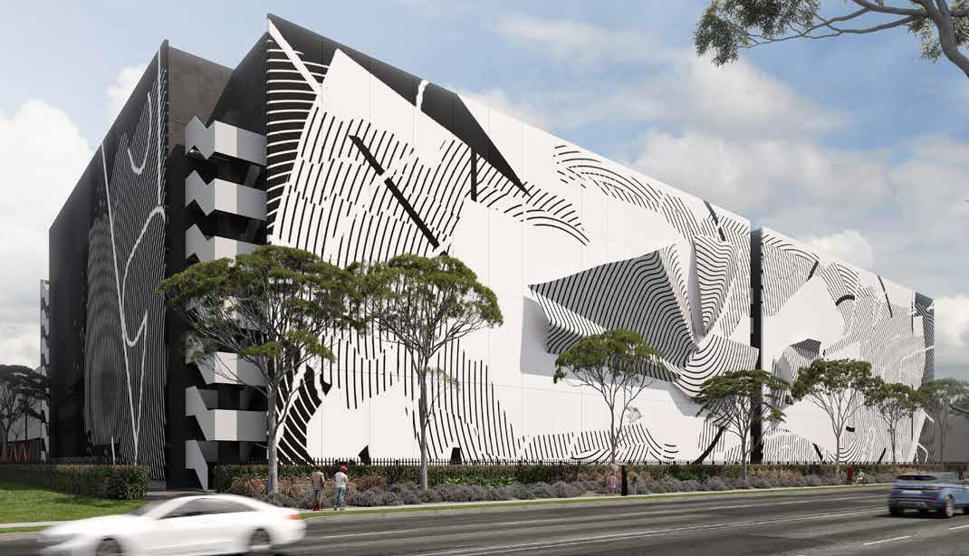 The project comprises ground and five suspended floors, in place of an existing on grade car park, and a covered roof top to support the solar array. Incorporated into the facility is a 665Kw solar system, electric car charging, rainwater reuse and recycled water system and HV upgrade.