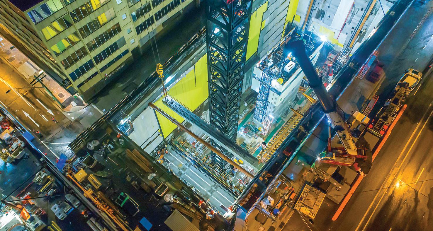 Two elements detailed in this project were implemented during the installation strategies for the over track exhaust (OTE) and large steel trusses that span the station box. The over track exhaust is a structural steel and precast concrete suspended structure that sits directly above the trackway to ventilate the tunnels. This structure is suspended from the floor above.