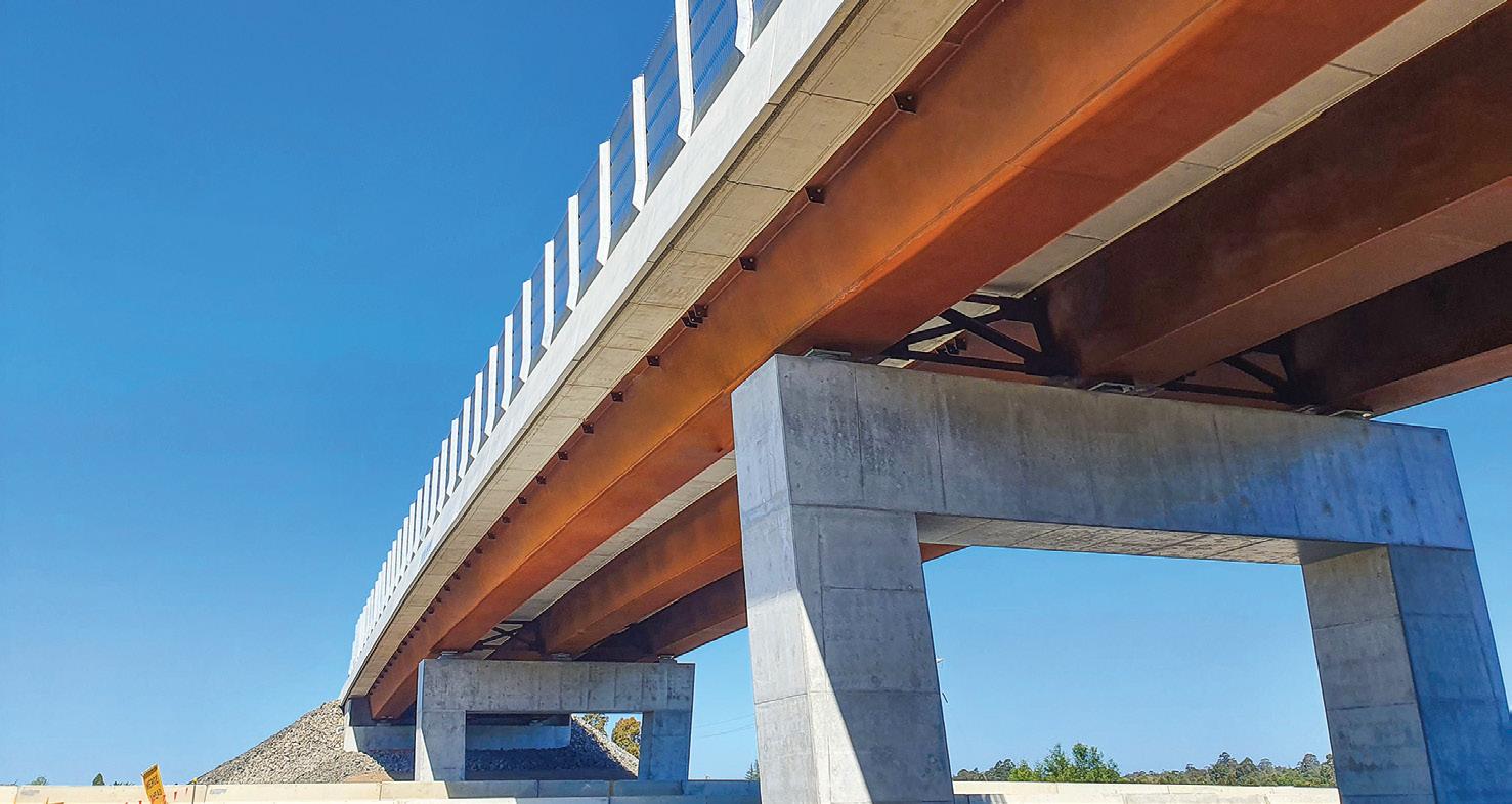 The larger of the bridges — Pestells Lane, had nine segments, welded on site into three sections, comprising two site welds per section. The smaller bridge — Strongs Road, comprising six segments was more complex to fabricate and assemble as it didn’t have a central pier.