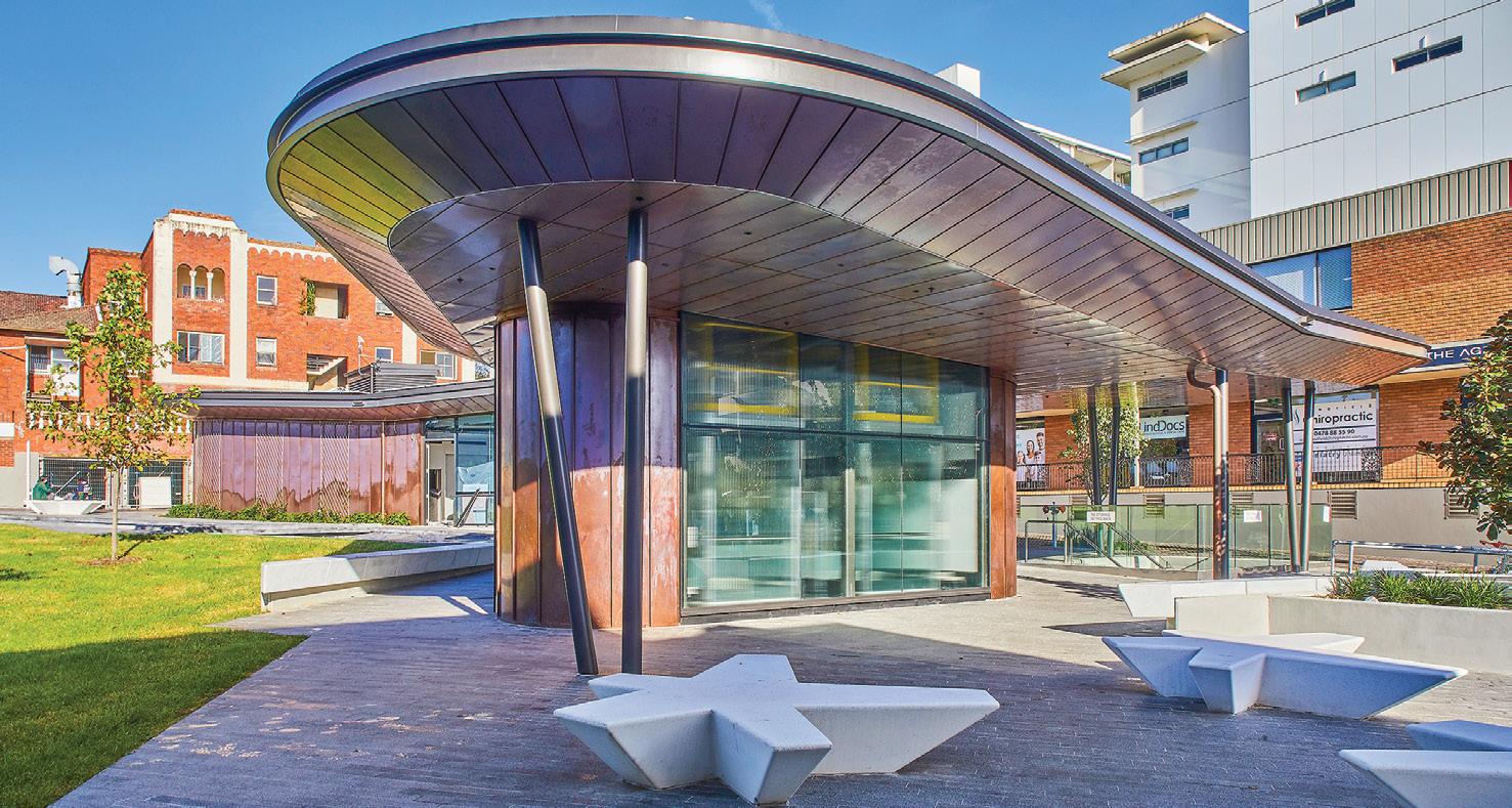 Lindfield Village Green is a new civic precinct comprising open space, a pavilion with café and a new three-level basement car park beneath the open space, comprising 241 spaces of short stay and commuter parking.