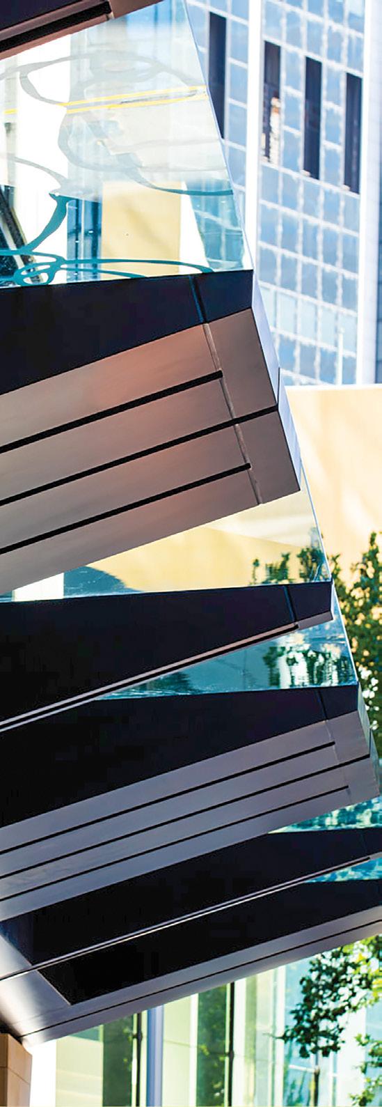 The SageGlass panels which tint automatically are electro chromatically controlled panels that use two UV sensors on the roof of the building. The panels have three tintable zones across each sheet of DGU Glass. The panels are controlled by built-in low voltage cables that run in floor boxes backed to a control panel and driven by a small computer.