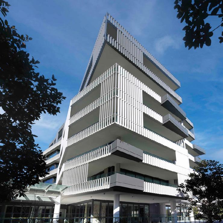 The new apartments are certainly ‘high end’ with large interiors and stunning finishes. The residents can enjoy a pool, a fitness centre, a private cinema, various function spaces and there is a concierge and a club lounge. The external façade is a particularly distinctive design that features painted glass extruded terracotta battens to enhance privacy and sun shading.