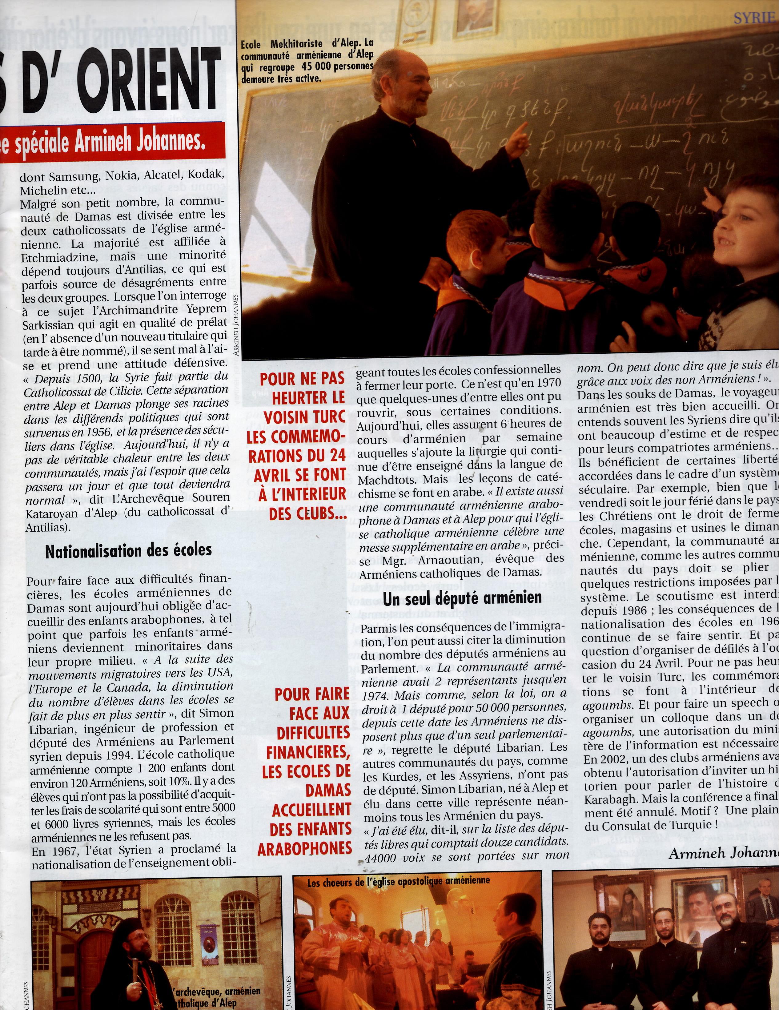 Armineh Johannes, Nouvelles d'Armenie Magazine, No. 90 - Oct 2003 Armeniens en Syrie