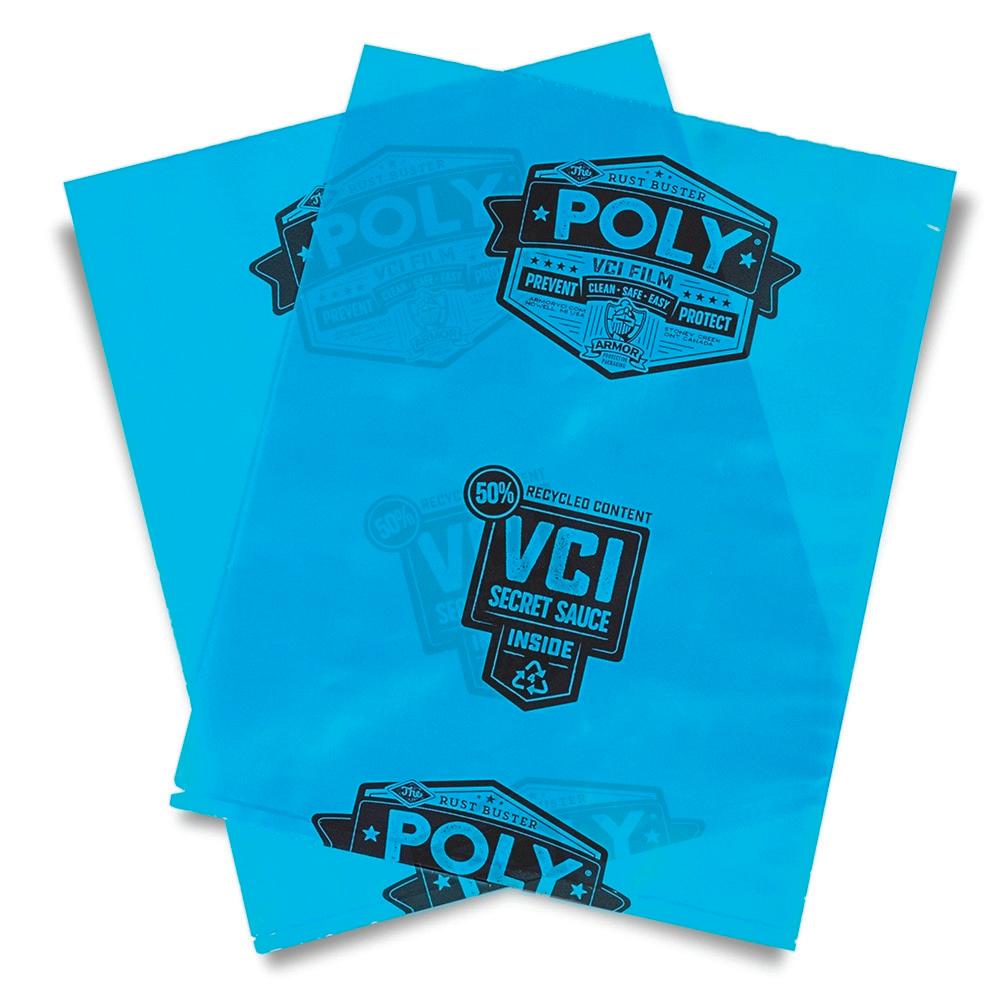 VCI poly lm safeguards metal from rust and corrosion in two ways. It not only provides a physical barrier that keeps metal parts clean and free from moisture, dust and contaminants, VCI lm also releases its rust-eradicating vapor corrosion inhibitor (a.k.a., VCI) to form a blanket of protection on the surface of metal that is only 2-3 molecules thick. VCI lm can be manufactured in many forms including rolls, sheets, VCI bags or tubing and it is an easy-to-use, clean and dry packaging option for metal and metal parts.