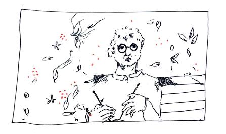 We had been in the garden for two hours when the sun began to set and it was time for the evening rounds. Penelope had spoken of her past with a surprisingly feverish intensity. I offered to help her fold up her knitting—she’d completed the cardigan’s bonnet while we were talking—but she insisted on packing up the woolly mass alone.