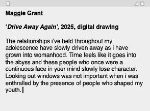 The wonderful writers and artists for this edition are keen-eyed, talented miniaturists, especially attentive to that which usually passes unnoticed. Good writing is often produced in motion (many English canonists advocated for the literary productivity of a brisk turn in the park, or around an empire), but in 2025, amidst constantly erupting chaos, genocides, and the breakdown of the world order, our writers are sitting down, slowing down, showing radical care to the world immediately around them. They are committing to paper the beauty and the violence ensconced in circumstance.