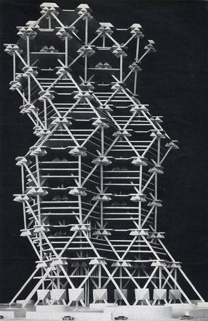 Aquesta lògica la podem relacionar i incloure en la visió de Kahn, quan ratifica aquesta idea parlant sobre ‘‘les pedres buides’’: ‘‘Los espacios definidos entre los elementos de una estructura son tan importantes como la estructura misma. Estos espacios varían de rango’’. L’arquitectura de Kahn no només es limita a lo construït sinó que també entén la capacitat de l’espai buit i l’aprèn a gestionar juntament amb Le Ricolais. Sens dubte, aquest és un plantejament bàsic del qual parteix, juntament amb altres criteris ja esmentats, la creació de la City Tower, que li permet aquesta sensació volàtil i alhora extremadament rígida. I només cal mirar les maquetes dels estudis previs de Le Ricolais per intuir en ells clares pincellades de la gran torre de Filadèlfia.