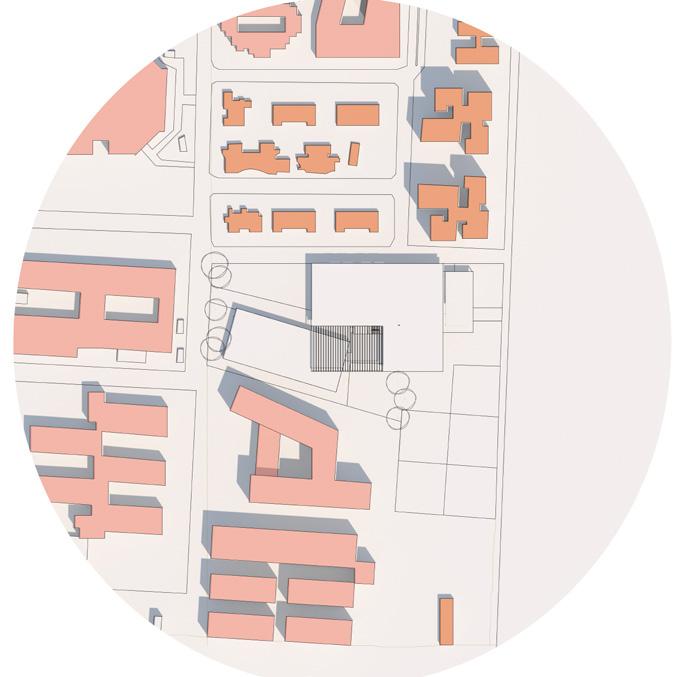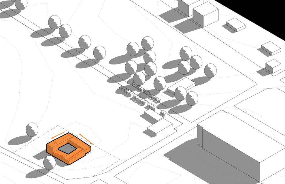Bending the shape to form a square with an open space in the centre to represent local street character.