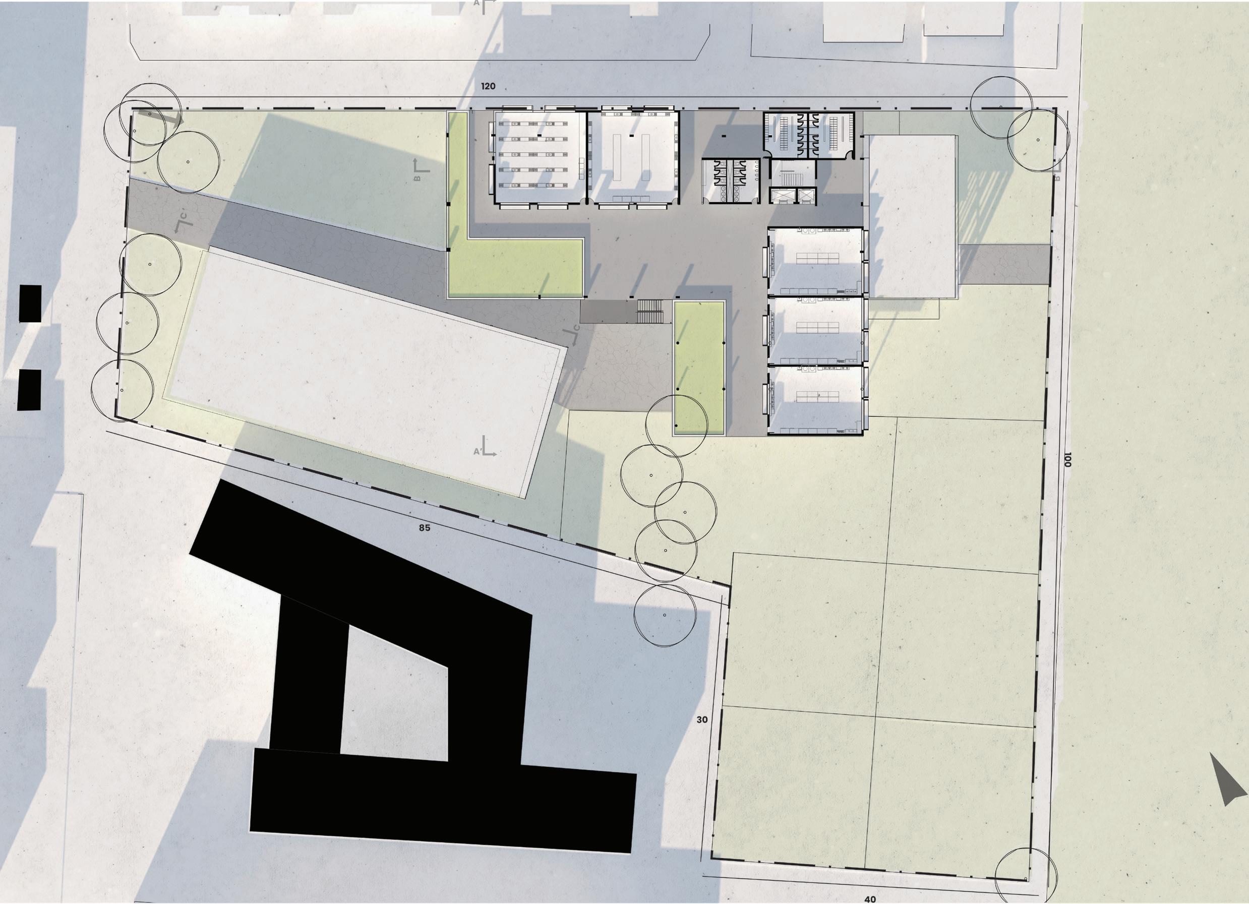 Ground Floor Plan Longitudinal Section 120 m2 unit 90 m2 unit 90 m2 unit 90 m2 unit 30 m2 unit 30 m2 unit Dorm 33
