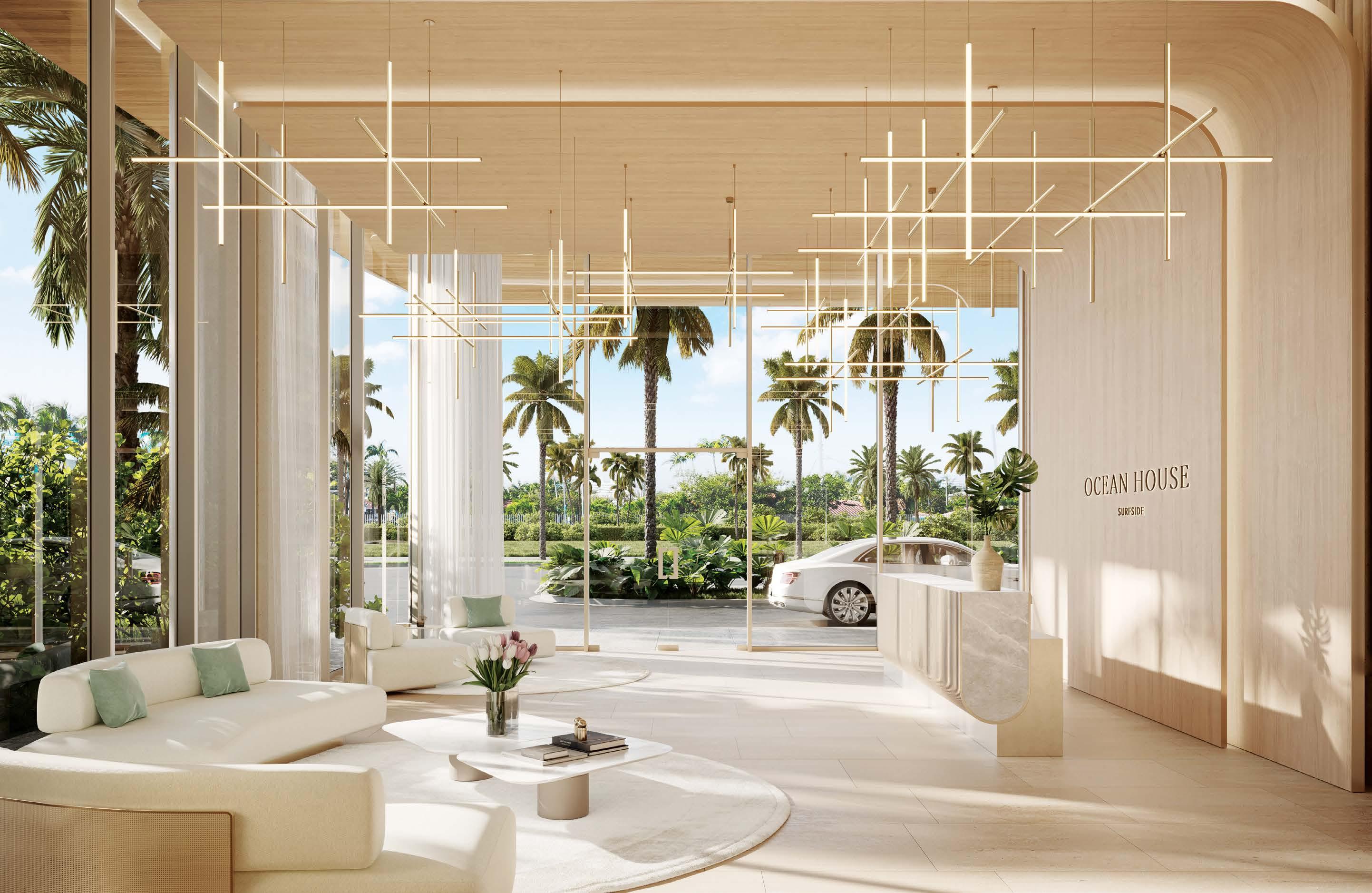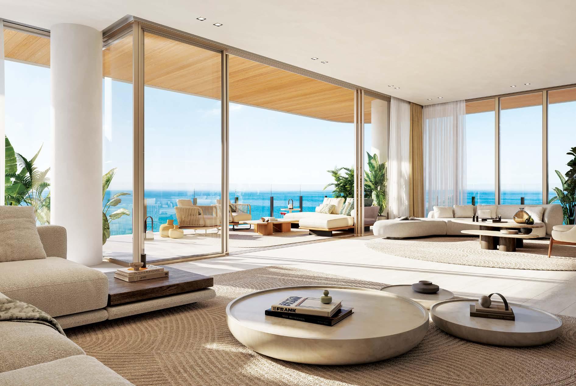 Ocean House is the soul of discretion. Each home is accessed through private keyed elevators and vestibules, imparting a sense of arrival even before stepping through the grand front door. Once inside, the entryway is flooded with southern and eastern light, the sea and sand visible through the glass balcony.