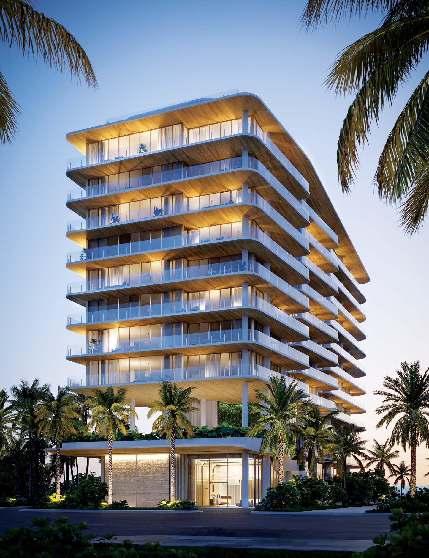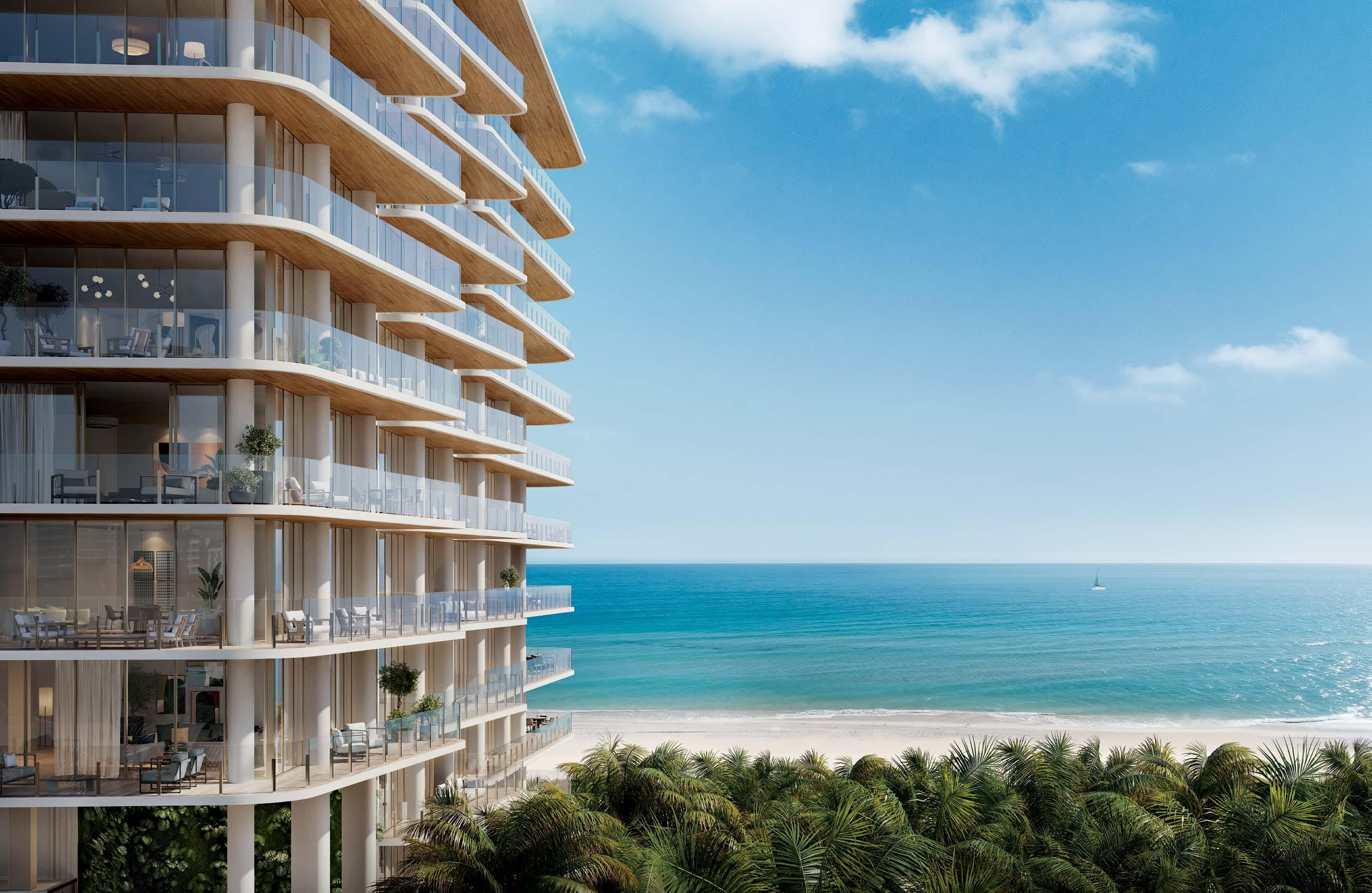 A rare collection of oceanfront residences amid the quiet and alluring sands of Surfside, Ocean House rises above the water, reflecting the brilliant light. Nestled between Miami Beach, Bal Harbour, and the Atlantic Ocean, this exclusive enclave starts with an essential location: one of the most desirable luxury residential waterfronts in Miami, with nearby access to every service and cultural amenity. The unsurpassed architecture by Bernardo Fort-Brescia offers views to the east, south, and west, taking in the sparkling ocean and Miami’s sculpted skyline. Each private residence is a uniquely customized home designed to evoke a restorative calm that extends throughout the entire property. Exquisite amenities are integrated into the lush tropical landscape, with reflecting ponds, floating cabanas, intimate lounges, and a spa and wellness center to enhance daily life with an uplifting sense of total well-being.