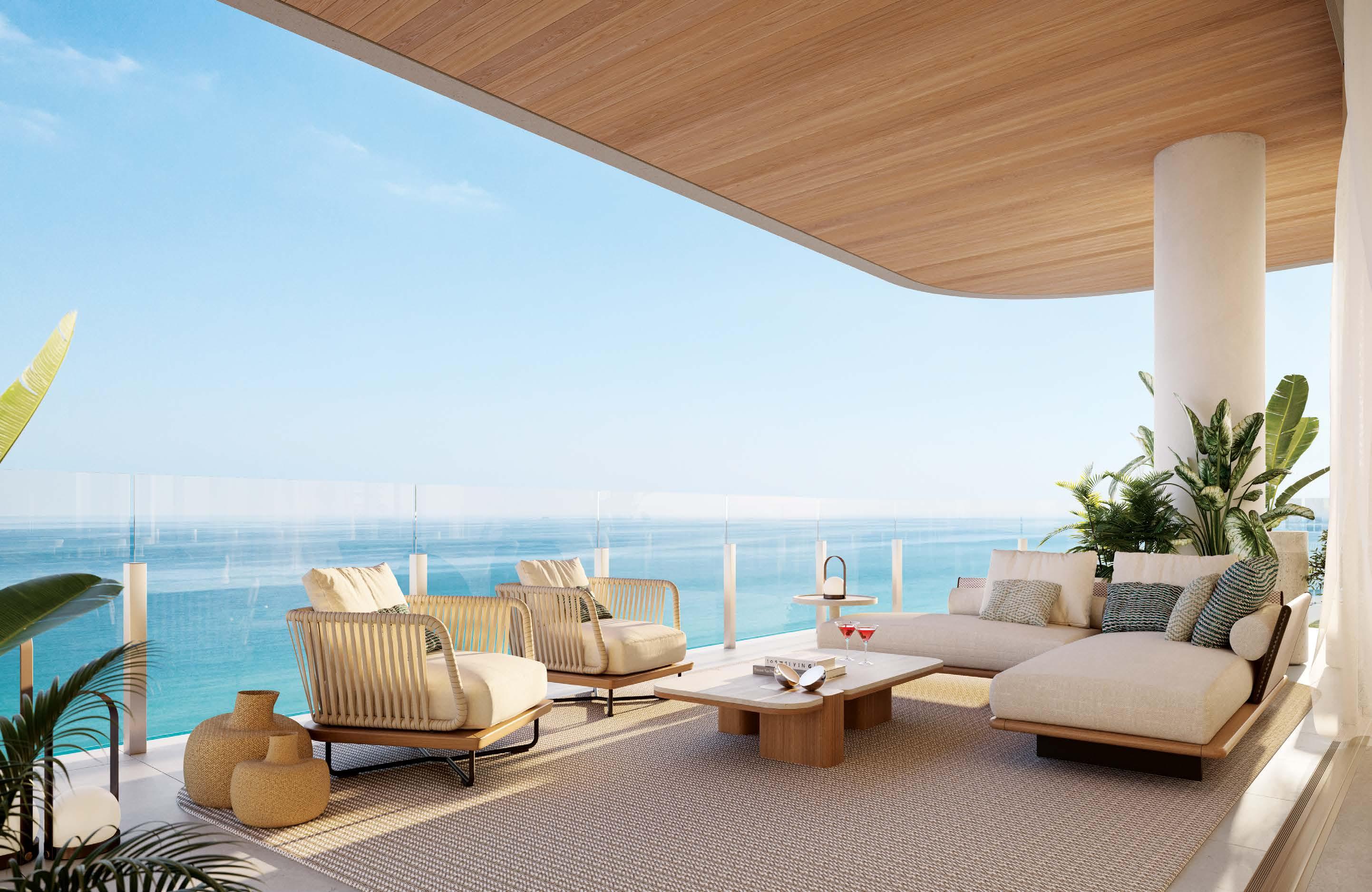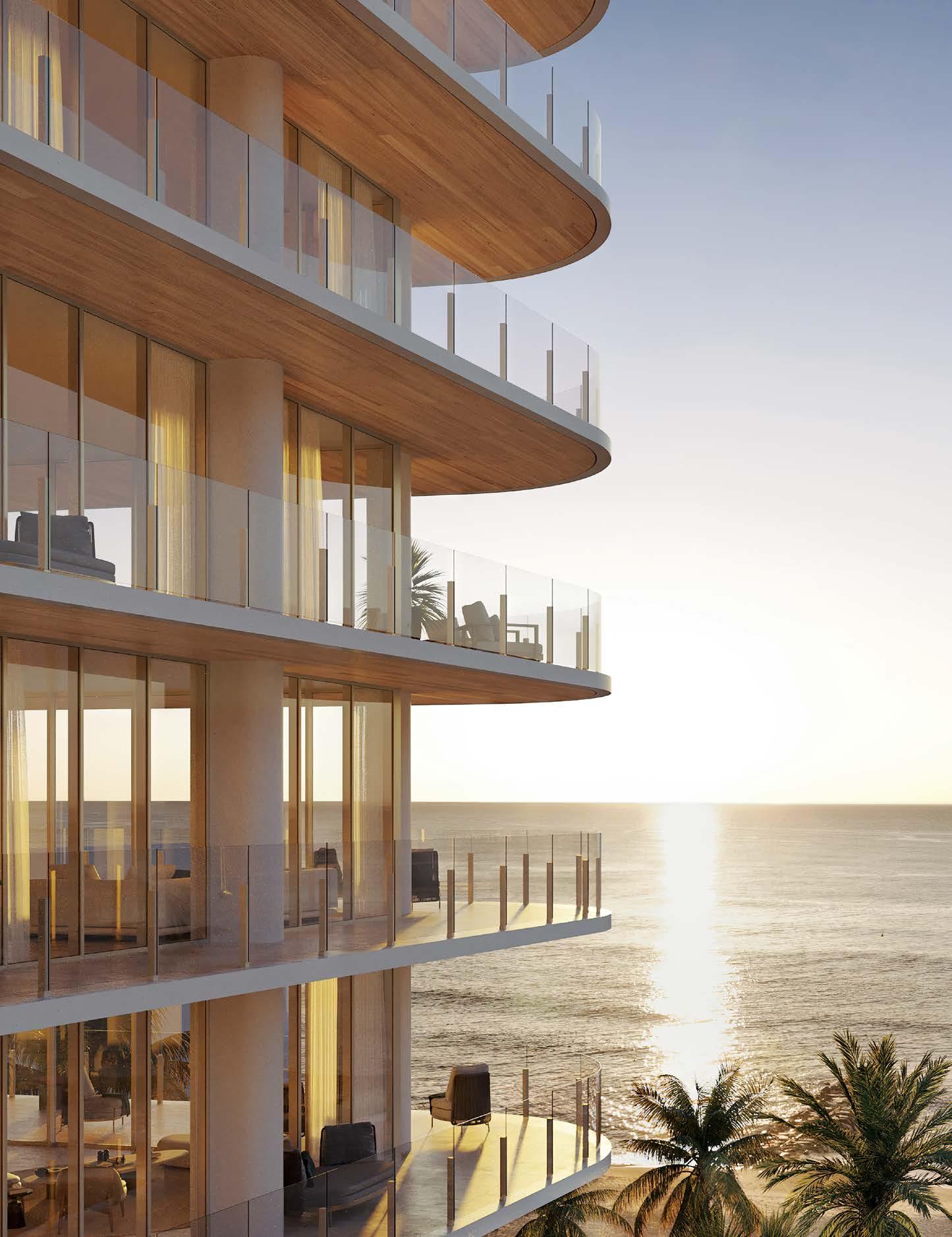 Clear glass terraces offer spectacular views— of the Atlantic Ocean, Bal Harbour, Miami Beach, and Downtown Miami—from select units