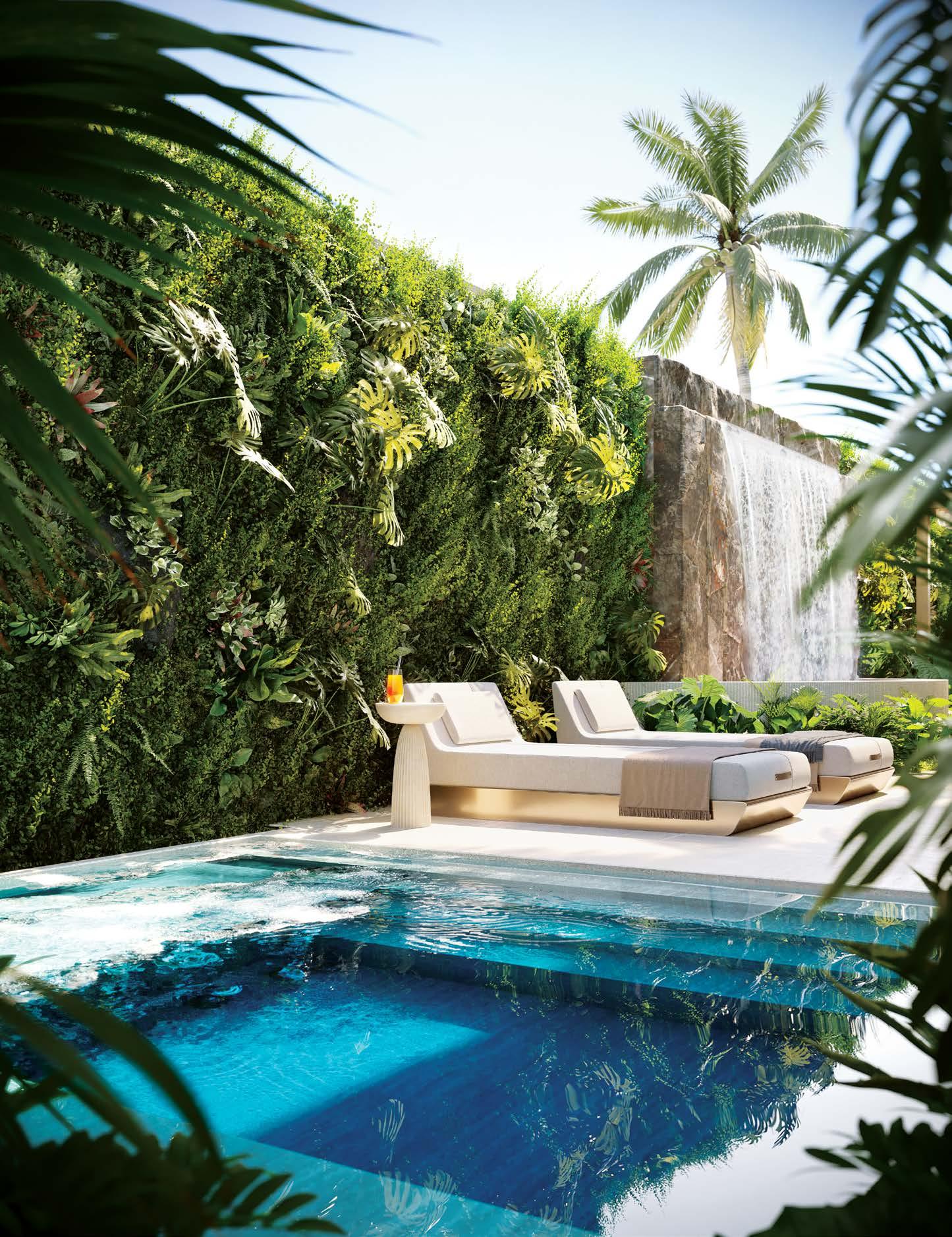 Behind the transparent facade, this limited collection of homes features elegant contemporary interiors by internationally renowned designer Carla Guilhem. She combines her expertise in luxury yachts and exclusive residences to create unparalleled bespoke design with impeccably crafted details. Through the use of just a few perfect organic materials, such as wood and natural stone, the residences feel idyllic and minimalist, never stark or austere. Indoor spaces transition effortlessly into the outdoors, underscoring the tropical nature of this serene oasis.