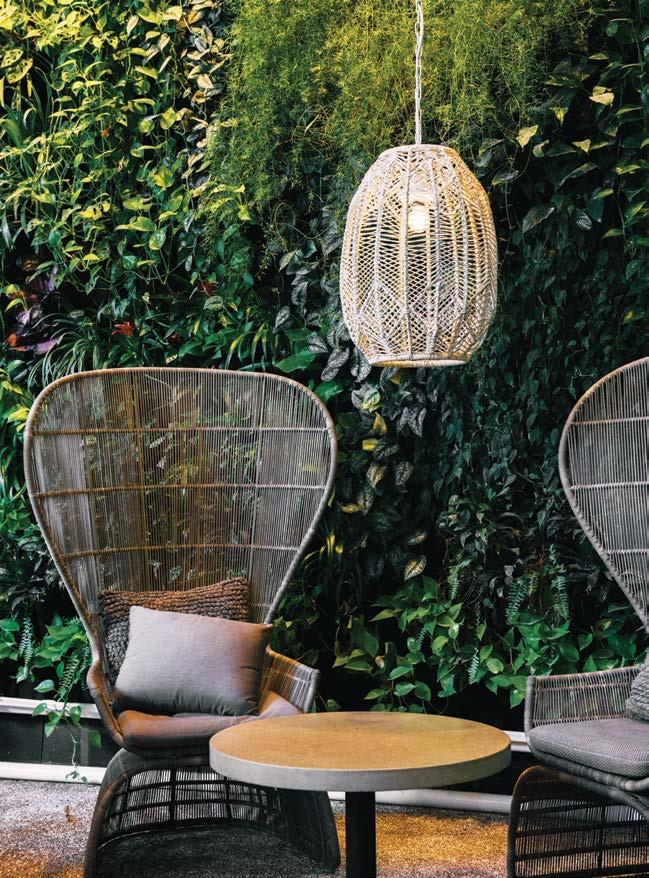 The spa pool, surrounded by lush plantings, offers a restorative respite outdoors.
