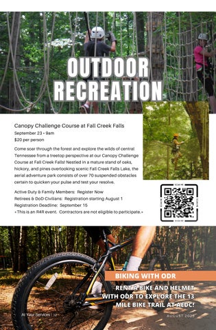 Comesoarthroughtheforestandexplorethewildsofcentral TennesseefromatreetopperspectiveatourCanopyChallenge CourseatFallCreekFalls!Nestledinamaturestandofoaks, hickory,andpinesoverlookingscenicFallCreekFallsLake,the aerialadventureparkconsistsofover70suspendedobstacles certaintoquickenyourpulseandtestyourresolve.