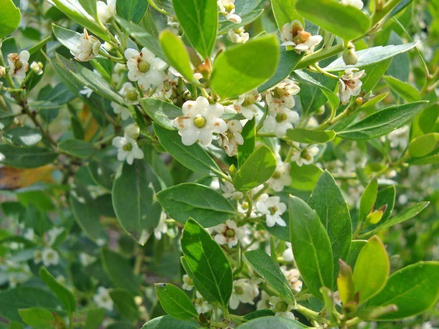 Pictured above, flowers and foliage of Ilex glabra ‘Peggy’s Cove’ #500-2007*A.