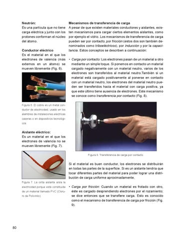 Aislante eléctrico: Es un material en el que los electrones de valencia no se mueven libremente (Fig. 7). Figura 8. Transferencia de carga por contacto.