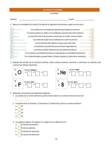 ACTIVIDAD EVALUADORA EL ÁTOMO Nombre: