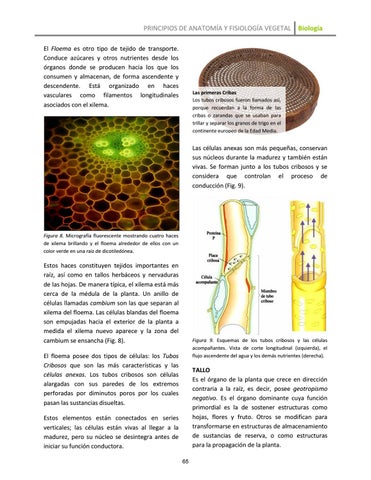 Estos elementos están conectados en series verticales; las células están vivas al llegar a la madurez, pero su núcleo se desintegra antes de iniciar su función conductora. 65