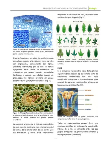 PRINCIPIOS DE ANATOMÍA Y FISIOLOGÍA VEGETAL Biología responden a los hábitos de vida, las condiciones ambientales y su filogenia (Fig.32).