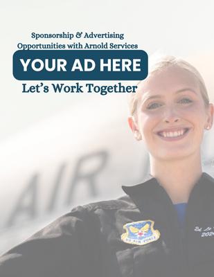Requirements: Alladsmustbesentforscreening6weeksbeforestartofthenextissueto arnoldservicesmarketing@gmail.com. AdsaretobesubmittedasaJPGorPNG. Alladsmustclearlystate“Paidadvertisement.NoFederalendorsementof advertiserintended.”Thisdisclaimermustbeatleastonehalftheadtextsizeand nosmallerthan10ptfont. Prices subject to change.