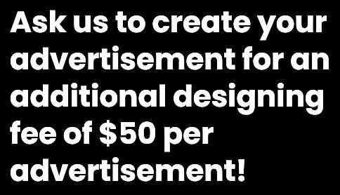 AdsaretobesubmittedasaJPGorPNGat150ppi/dpiwithaRGBcolorprofile. Alladsmustclearlystate“Paidadvertisement.NoFederalendorsementof advertiserintended.”Thisdisclaimermustbeatleastonehalftheadtextsizeand nosmallerthan10ptfont Re-directlinksmustbetothebusiness’swebsiteorsocialmediapage