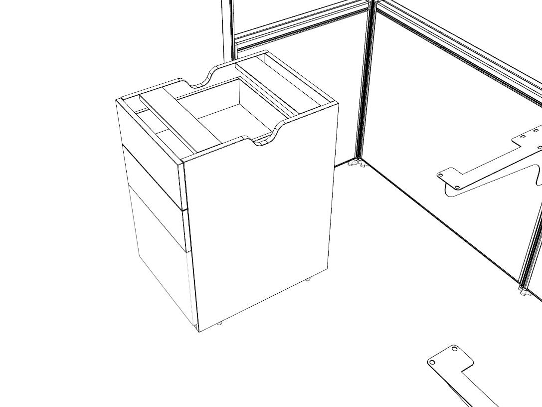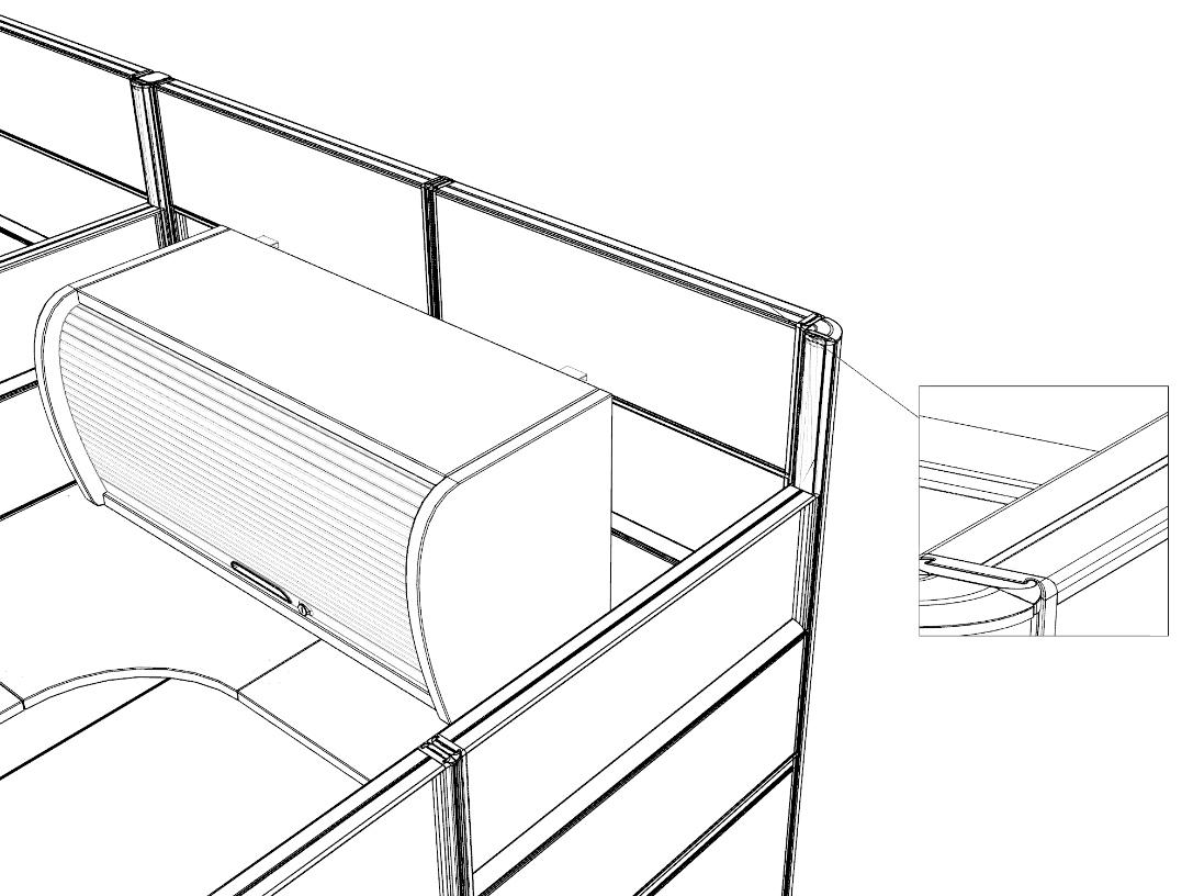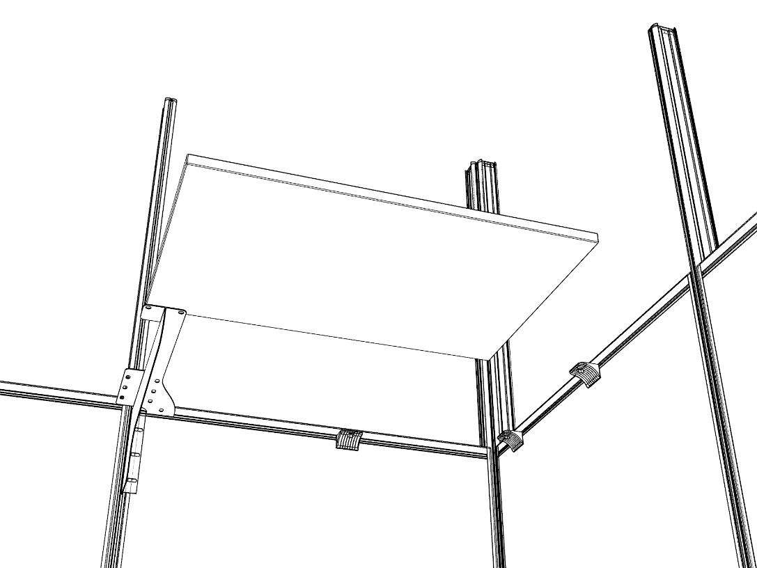 Set(1)CornerWorksurface(HG-900WHT-C)onthe(2) SmallBracketsand(2)Cantilevers.Repeatthisstepinthe otherUnit.