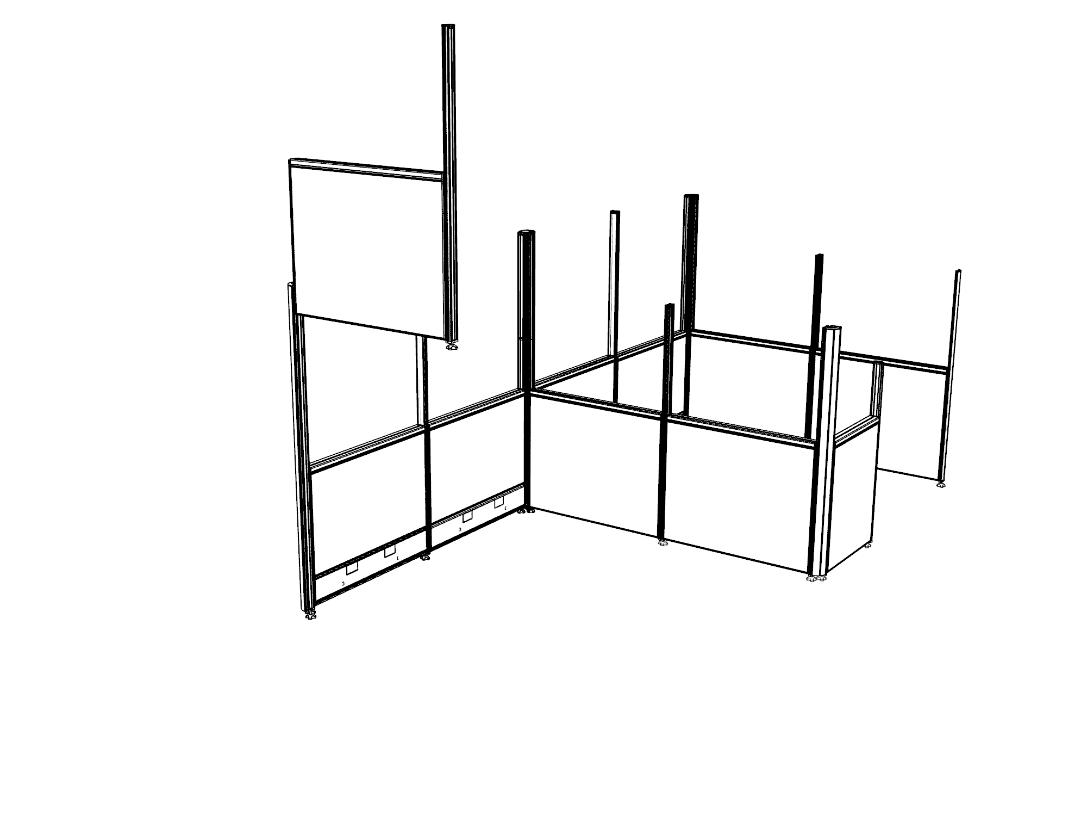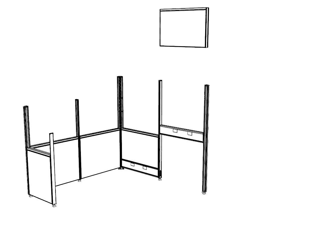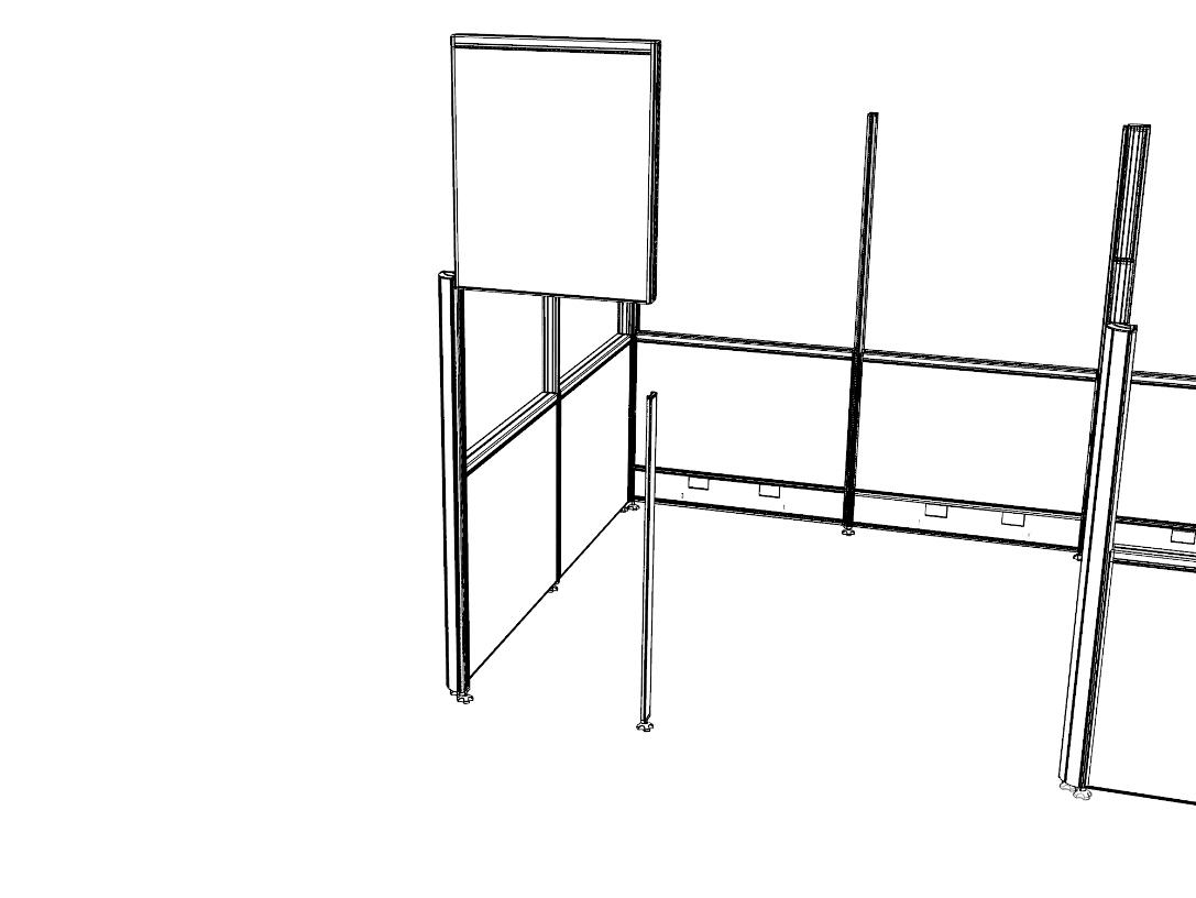 Slide(1)PoweredRaceway(RW-915-1-P)and(1)Panel (PA-956BY20)intothe65inL-Post(LP-1650)and65inIPost(IP-1650).